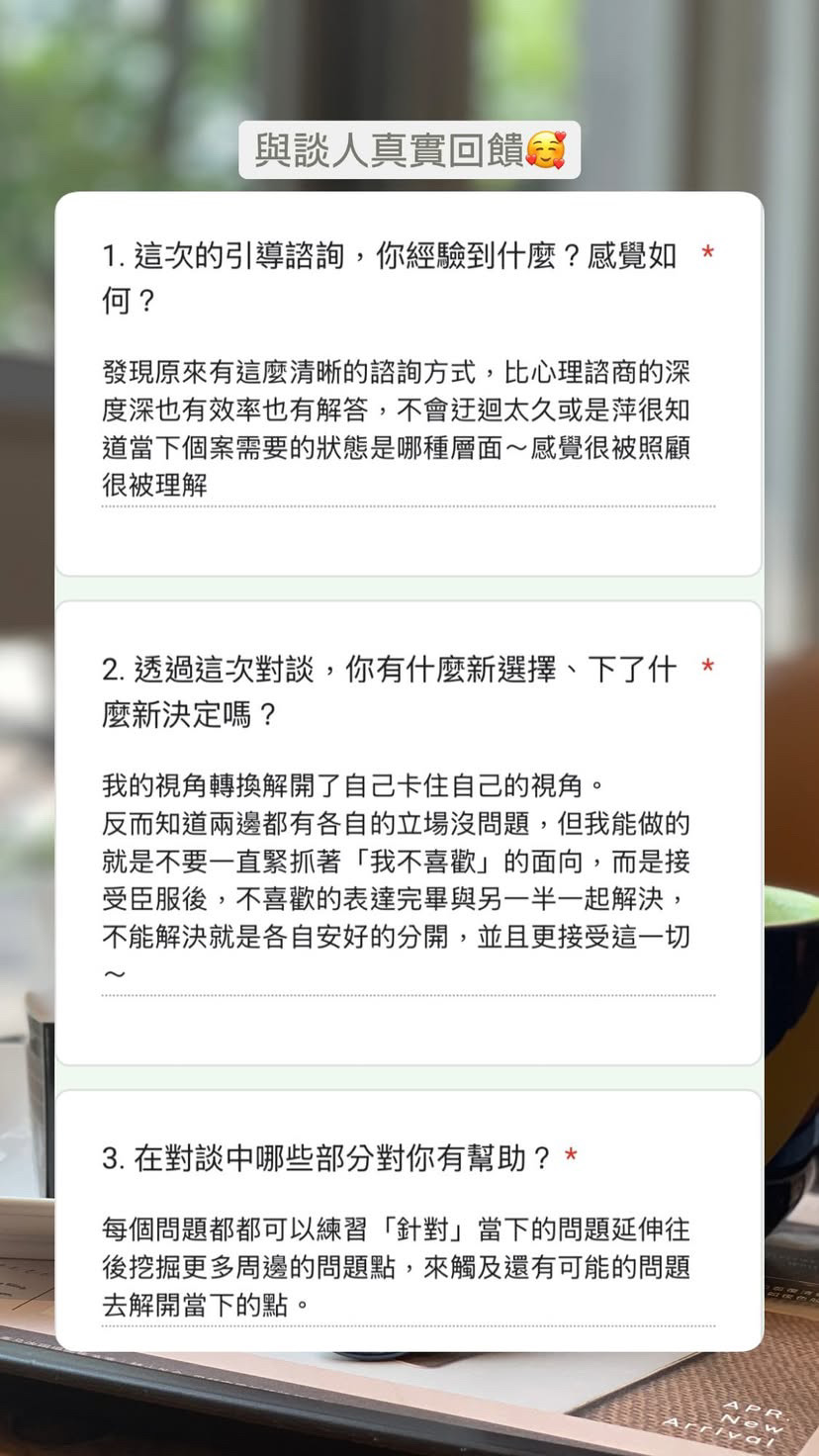 * 可選擇線上或實體(高雄為主)對談 *
