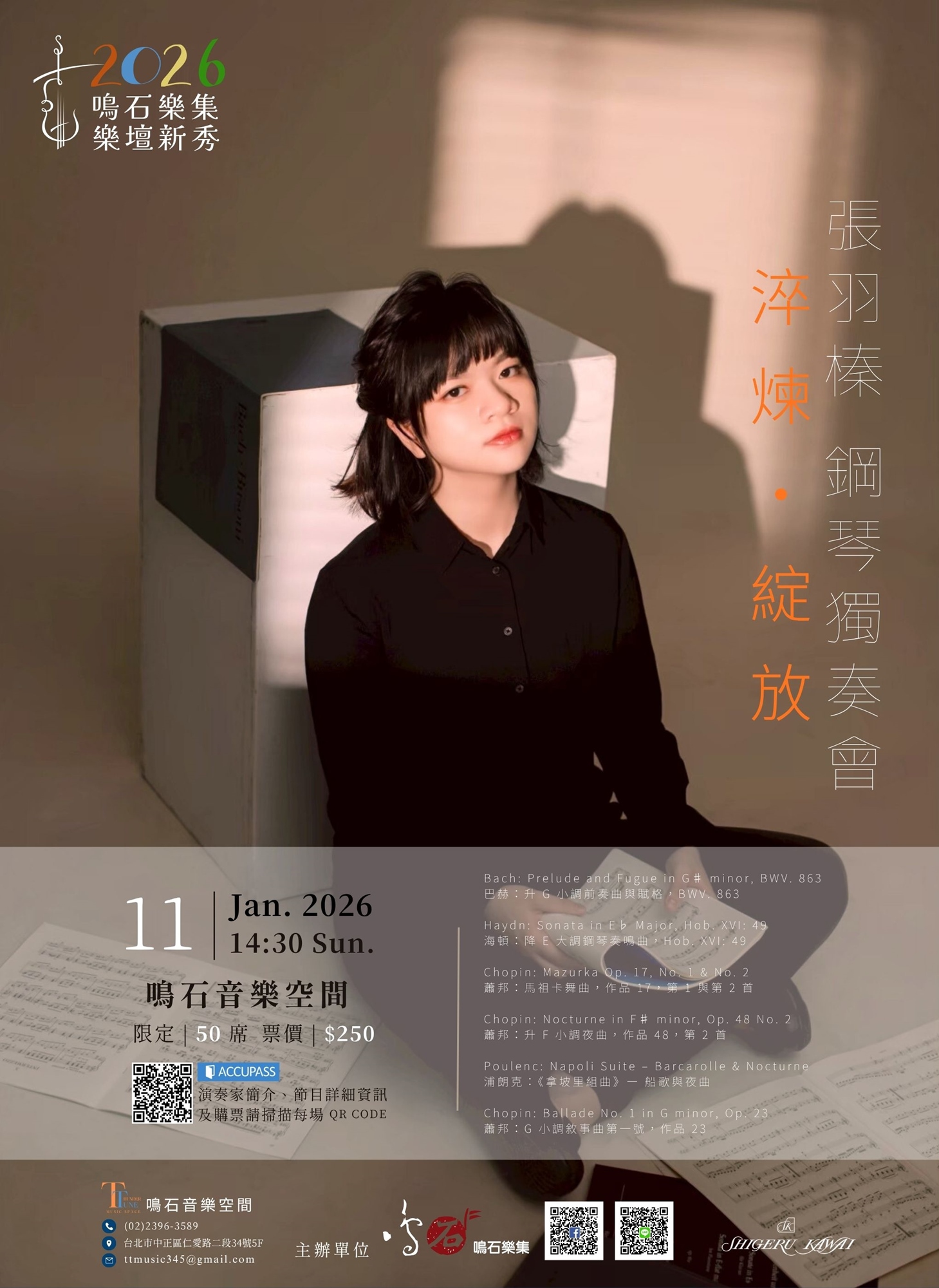 《淬煉・綻放:張羽榛鋼琴獨奏會》旨在描繪張羽榛音樂道路上的心路歷程。「淬煉」代表著對藝術的真誠態度,即便從長笛轉習鋼琴起步較晚,她依然憑藉著熱忱與刻苦訓練,努力克服技藝上的挑戰;而「綻放」則象徵著這些日積月累的學習與探索,將在舞台上以真摯的音樂表達呈現出來,希望能與聽眾共享這份對音樂的摯愛與感動。
