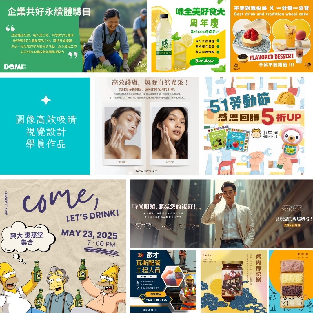 課程內容貼近中小企業行銷日常,從提案簡報、社群內容到品牌素材實作,一天內學會、隔天就能上線應用。