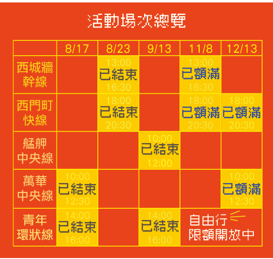 ![]() 《台北第一街》為2023年度《列車長的秘寶》番外篇,在本次萬博活動上復出參展、開放報名參加。 |