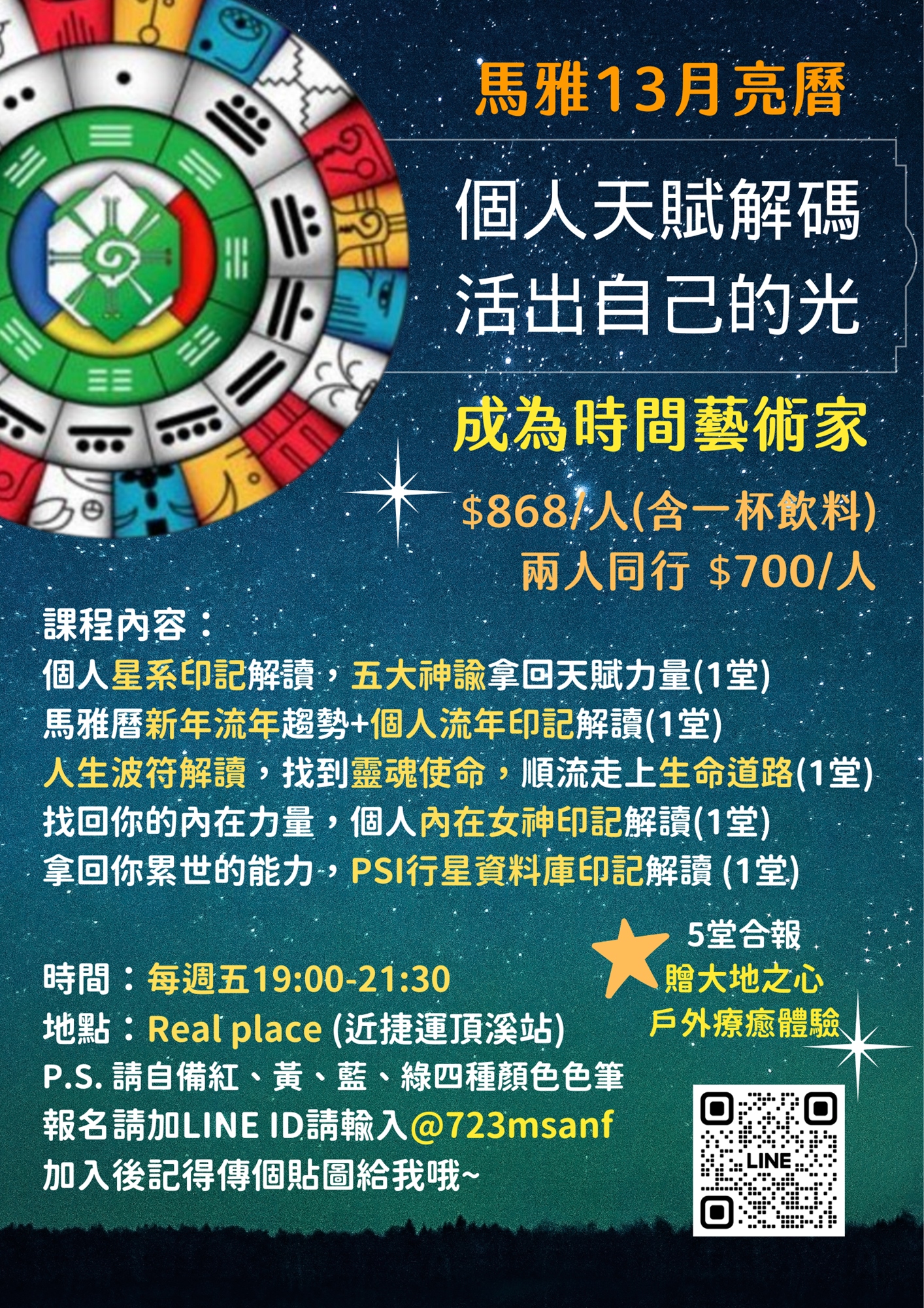 *每一堂會有彩虹橋靜心冥想or彩繪靜心胡娜庫許願