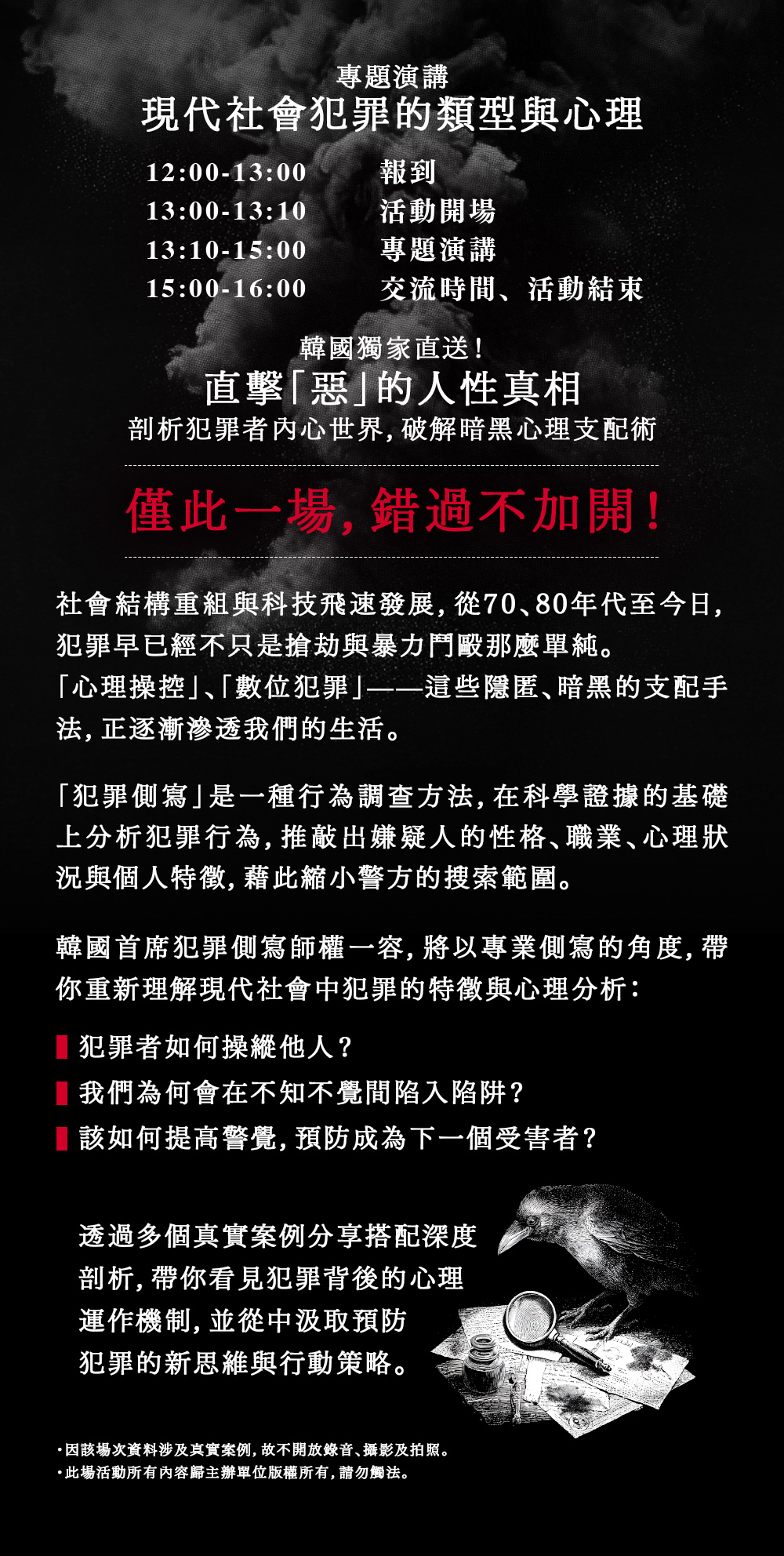 鏡文學黑鴉偵探俱樂部:國際大師論壇 X 犯罪調查現場課程