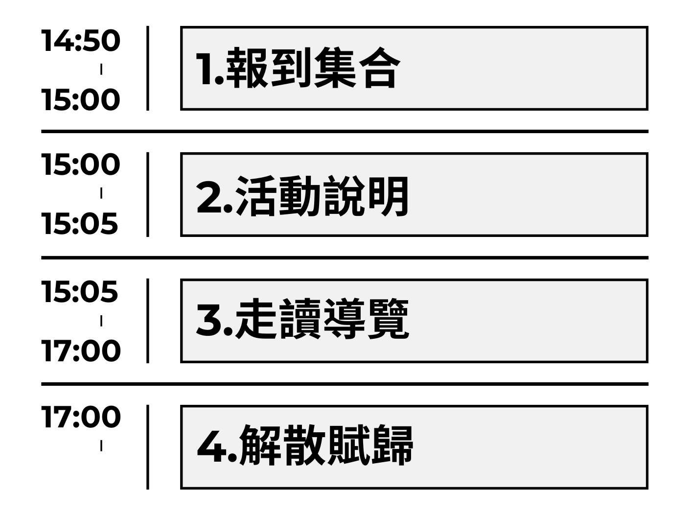 🔸 15人以上參加之機關團體,歡迎來信洽詢預約導覽,將有專人為您服務。