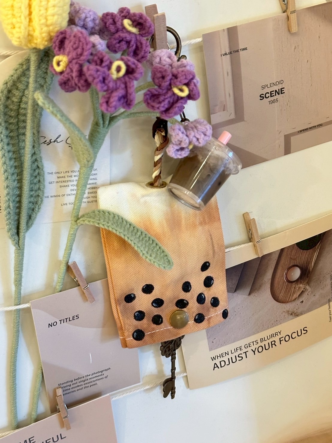 搭配自己喜愛顏色,編織成簡約手拎袋,課堂上會依據不同嗜好指導不同的編法,在挑選喜愛的吊飾,組合成簡約又有個性風格的商品。