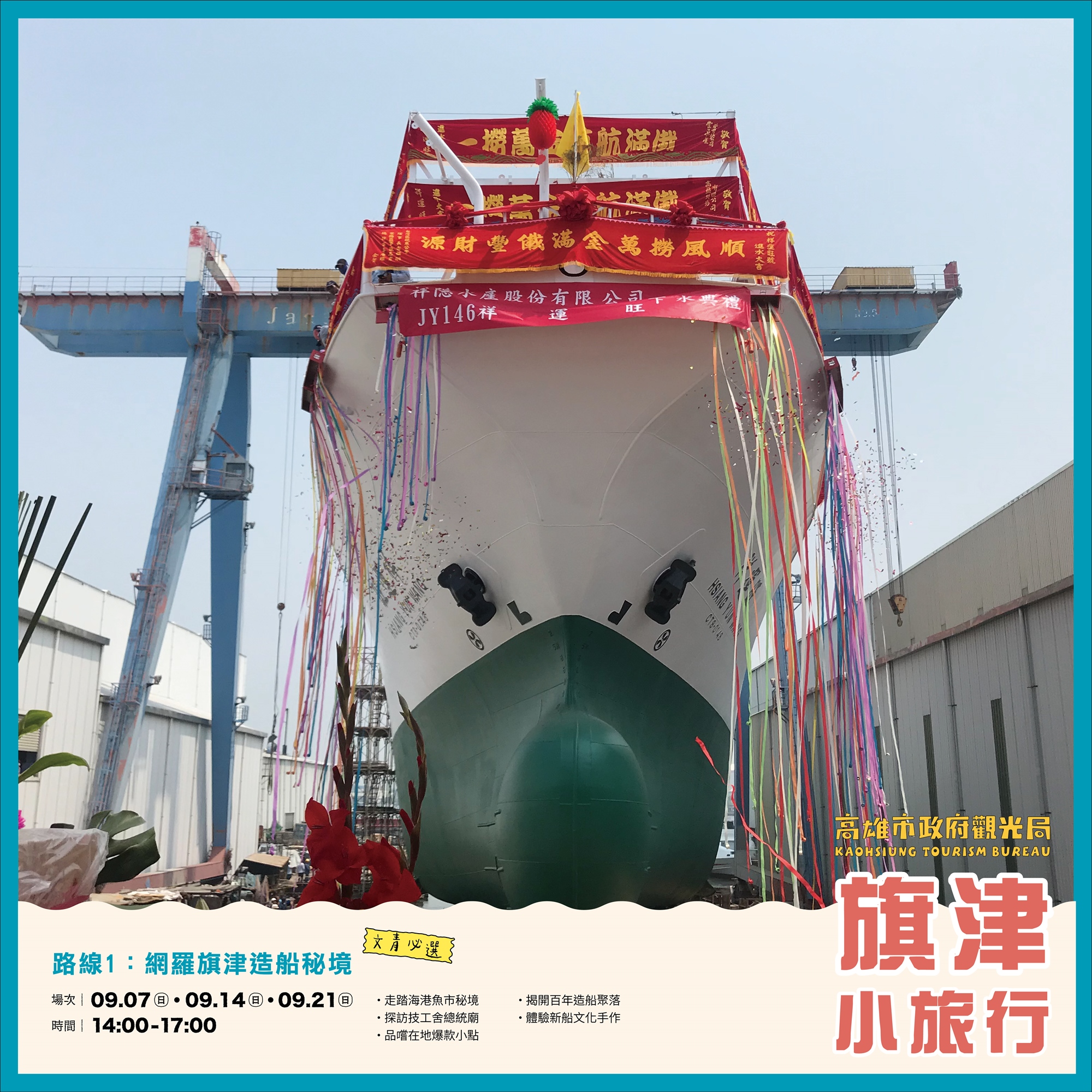 網羅旗津造船秘境,發現造船與他們的產地。從百年海賊修船傳說,到新式造船廠誕生,揭開一連串造船聚落,探索海軍第四造船廠宿舍的神秘面紗。看木造舢舨復興基地、糊染船旗飄揚,與碼頭工人後代聊聊「第七艦隊」的耳語。親手製作漁旗網版布袋,把祝福帶回家,再用一口海味蝦餅與香草茶,收下滿滿的海港記憶。
