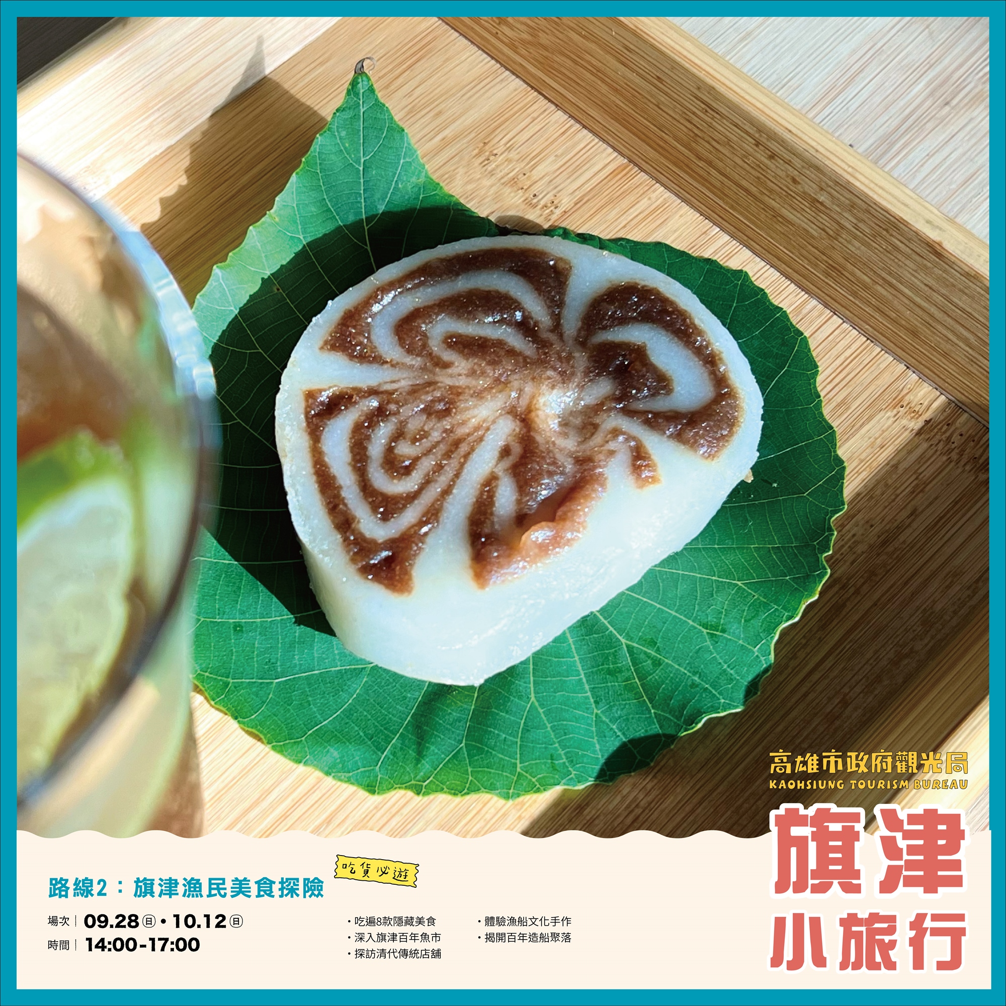 漫遊旗津漁港,發現清朝三和餅舖的糕點,餅香跨越百年,咬一顆米丸,嚐到港邊最純粹的喜慶味,吃一口虱目魚丸,極品鮮甜、彈牙入魂。行經市場百年中藥舖旁的仙草,冰涼滑順,再拼一里路。直達海軍浦口市場,發現斗六冰城的古早冰、和眷村味道的罔市家餡餅,冰火交錯。最後,在大陳碼頭工聚落和海軍造船基地,品嚐帶勁獨特的糖心糕,體驗漁村文創,用味蕾收集旗津的海風和色彩。