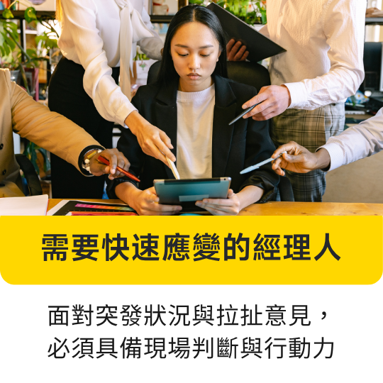 | 講座三:情況不確定怎麼辦?主管如何帶領團隊做出折衷與行動判斷 |