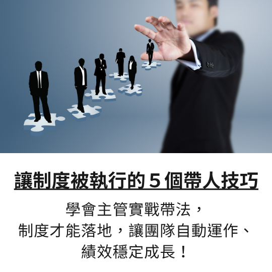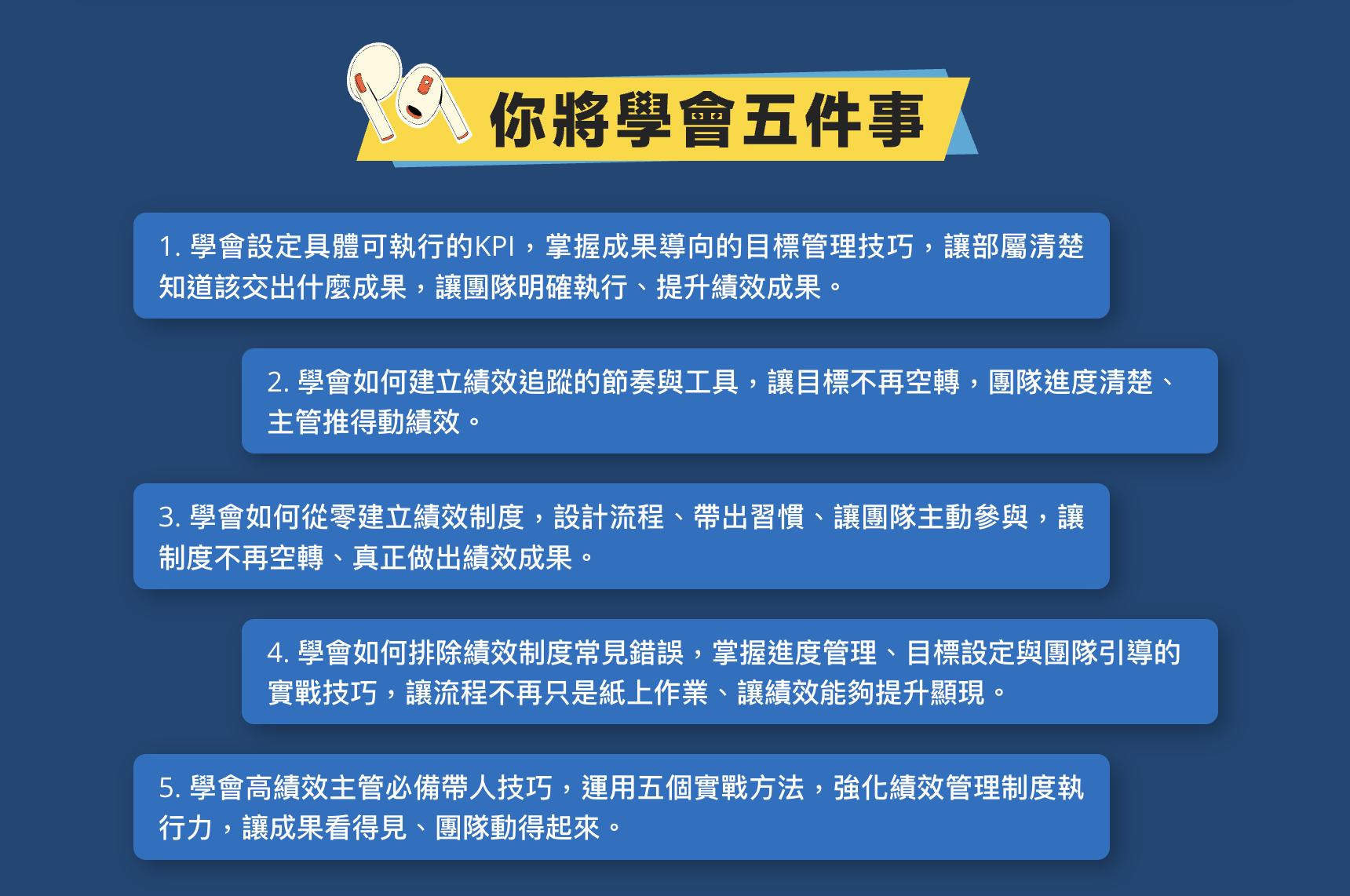 | 講座五:這樣做很加分!如何讓績效制度真正有效?主管帶人五個實戰帶法 |
