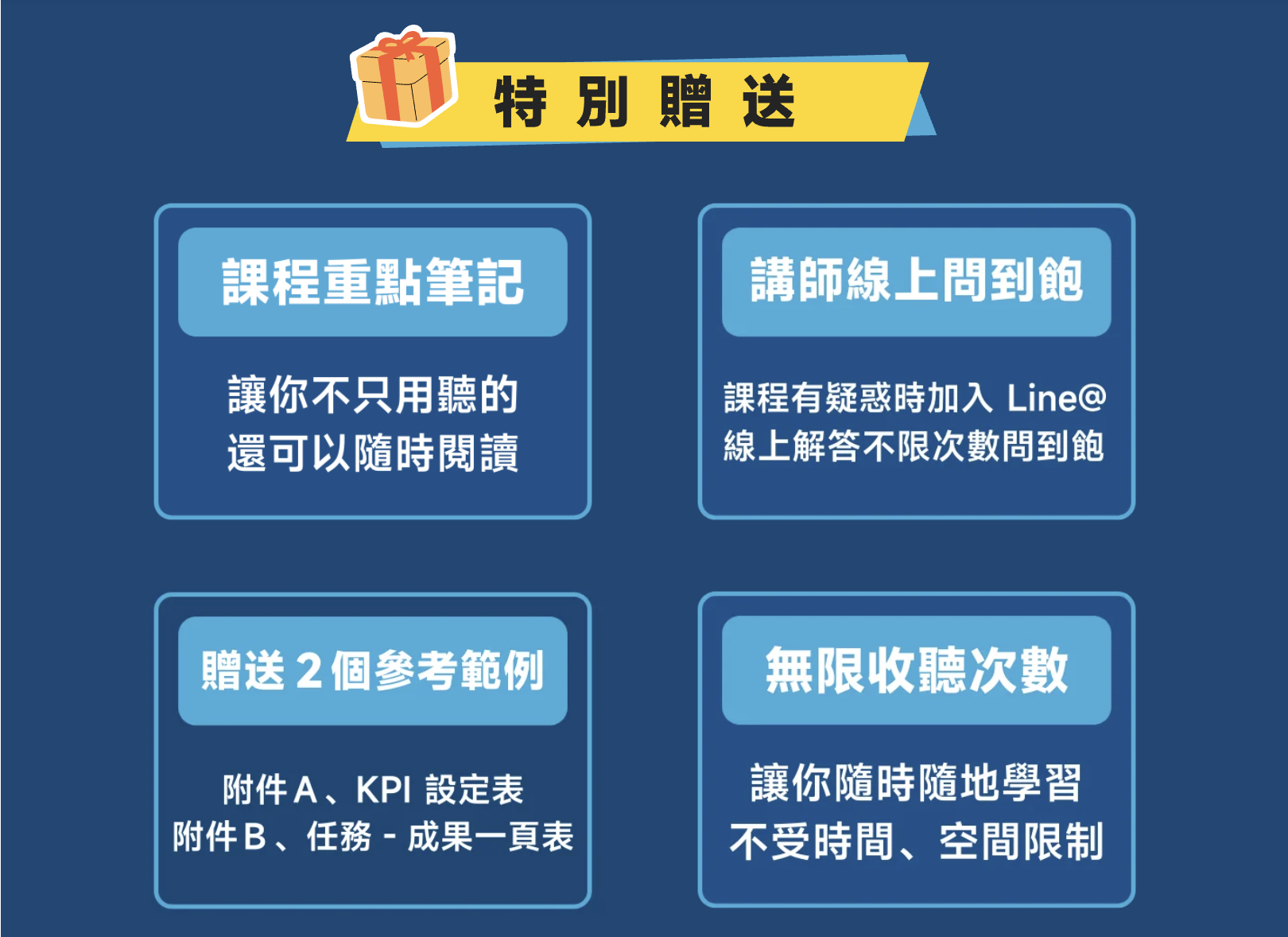 | 講座一:設定KPI不再空泛:主管怎麼訂出成果目標與指標? |