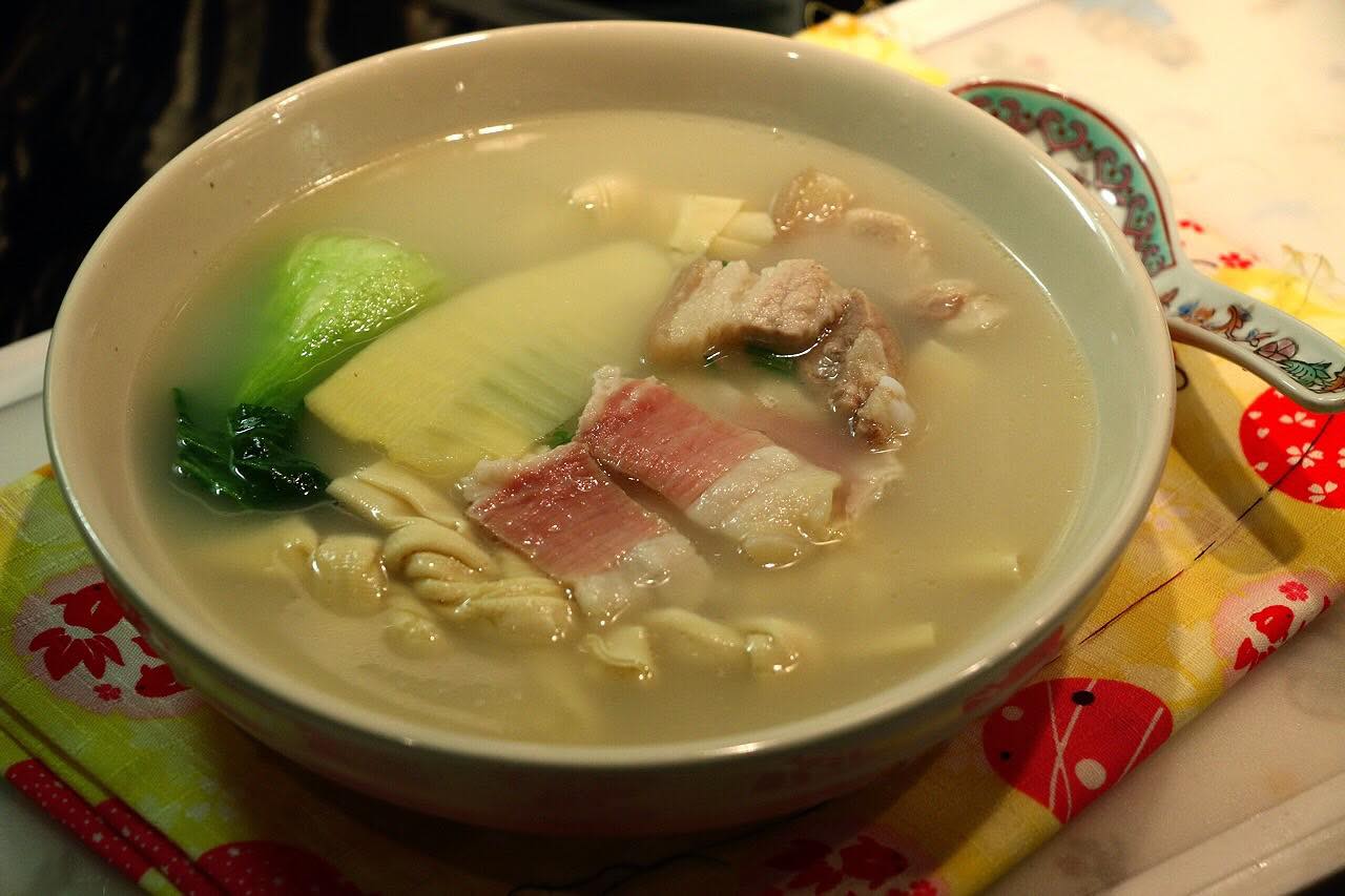 ·醃篤鮮:上海經典湯品,鮮筍、鹹肉、百頁結在土鍋中慢燉,湯色乳白、滋味濃郁。
