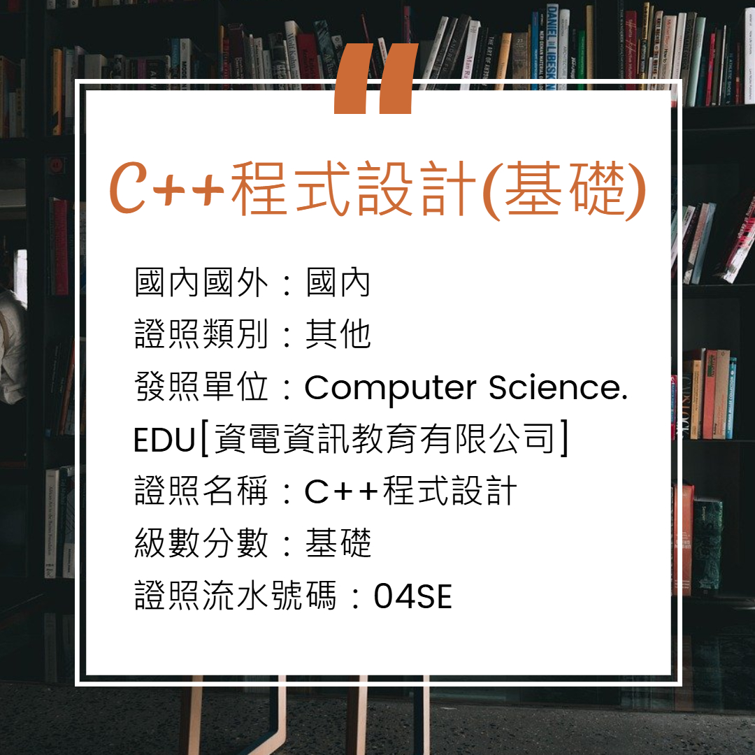 ✨順利完成課程,可以領取【C++程式設計基礎】證書一張,證照流水號碼:04SE,可上傳學習歷程【檢定證照紀錄】或【其他活動紀錄(營隊)。