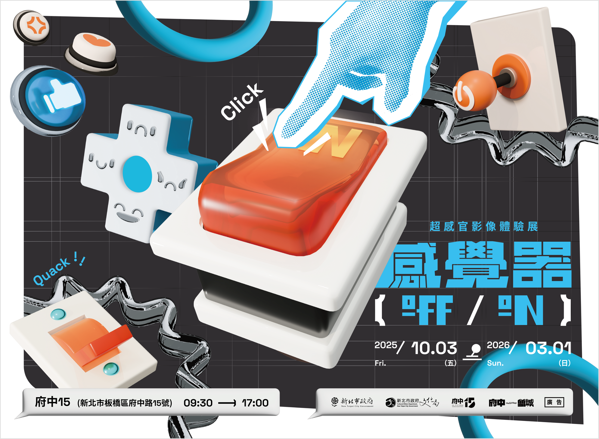 在影像與聲音不斷輸入的日常中,我們的感官彷彿進入待機模式,對身體的感覺與情緒反應逐漸變得模糊。本展覽以「感覺器 OFF/ON」為名,試圖暫停這種麻痺狀態,像是按下感官的重啟鍵,讓我們重新打開那些被忽略的感覺。觀察我們如何在影像、聲音與社群語言的刺激下產生情緒變化,並一點一滴地形塑出現在的自己。