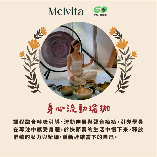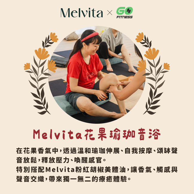 在花果香氣中,透過溫和瑜珈伸展、自我按摩、頌缽聲音放鬆,釋放壓力、喚醒感官。
