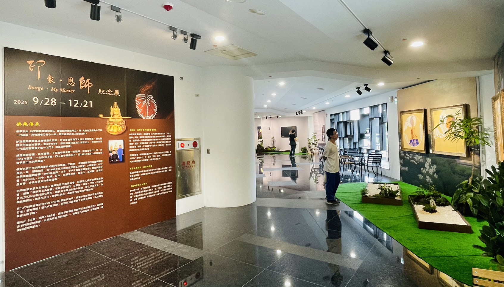 擁有金氏世界紀錄認證™「最大鋼製雕塑」的「淡水.千手千眼觀世音菩薩聖像」,每逢連續假期,廟方定會精心規劃節令相關的展覽與活動。這次針對教師節,又逢園區最佳賞楓期,廟方特別推出《印象.恩師》紀念展,展出佛乘宗第三代宗師善單所創作的三個經典系列,內容體現了宗師對其恩師──佛乘宗二代祖師 緣道菩薩最深的感恩與思念。