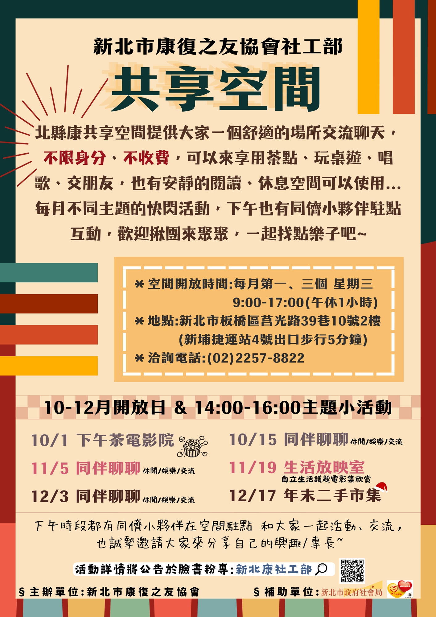 台灣新北康社工部(新北市板橋區莒光路39巷10號2樓📎新埔捷運站4號出口步行5分鐘)