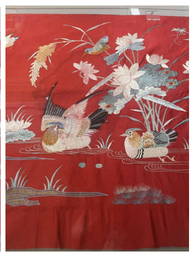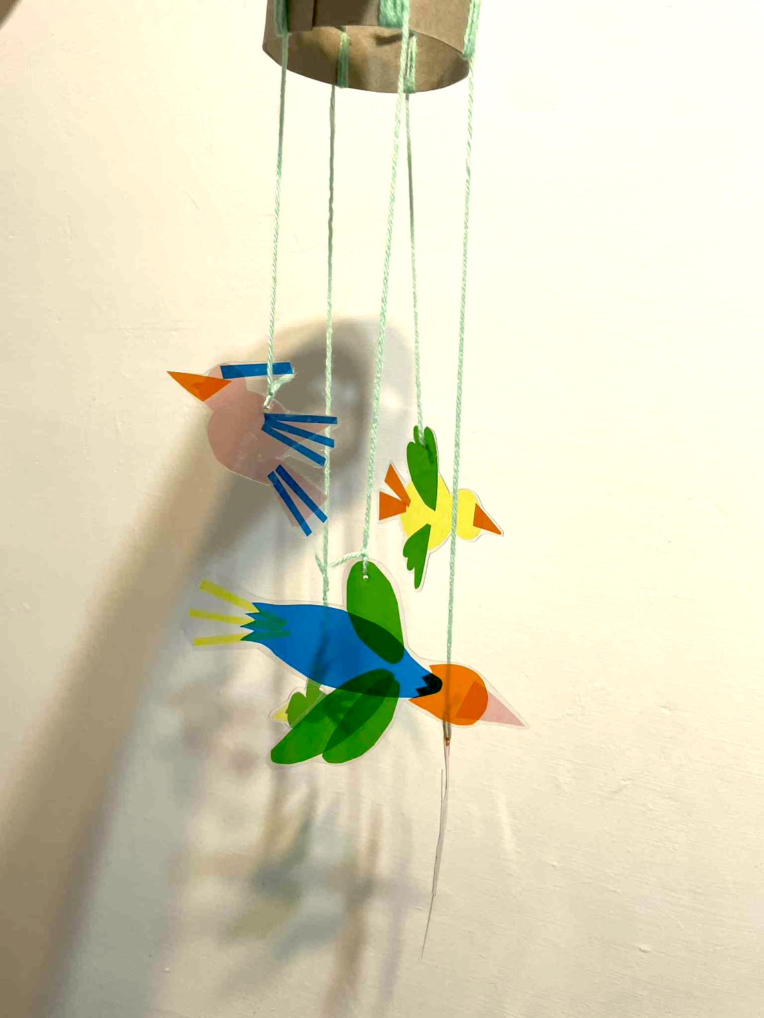 在「老派浪漫:館藏圖像創意應用特展」中有許多經典的授權圖紋,我們帶領孩子觀賞這些圖紋,將傳統橫幅中象徵吉祥與新生的鸛鳥,賦予新生命,製作成美麗的「幸運風鈴」吧!