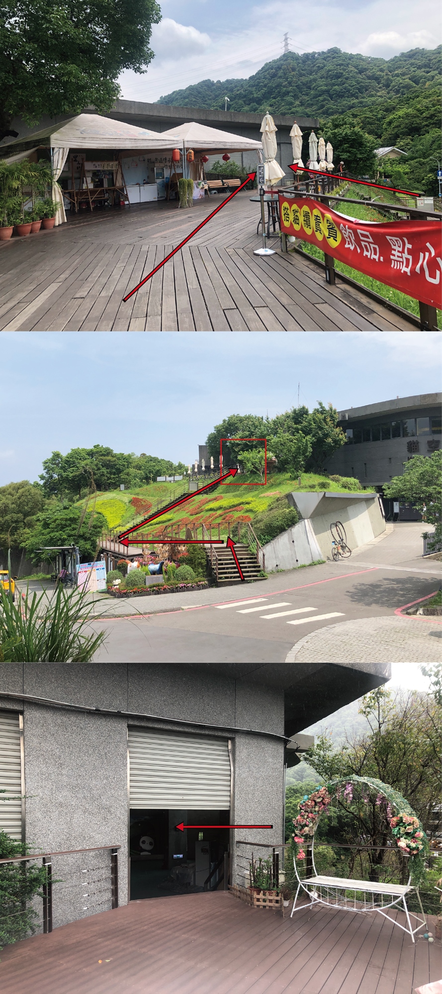 貓纜下車後由【景觀平台出口】至木平台,由工作人員引導進入貓纜貓空站|儲車區