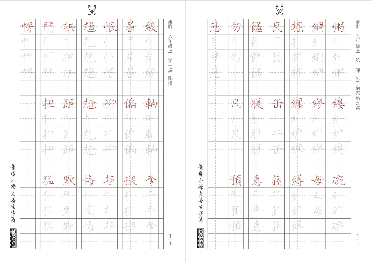 ✹ 葉曄習字網「小學友善生字簿」完整資源權限(到115年1月底)