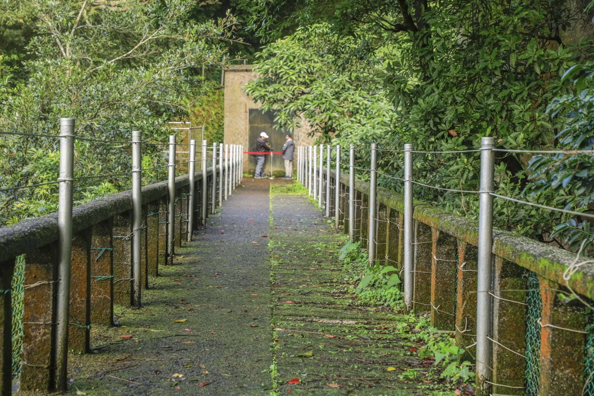 在進入即將對外開放的「藍寶石泉」之前,會先經過一條優美的弧形拱橋「草山水管橋」