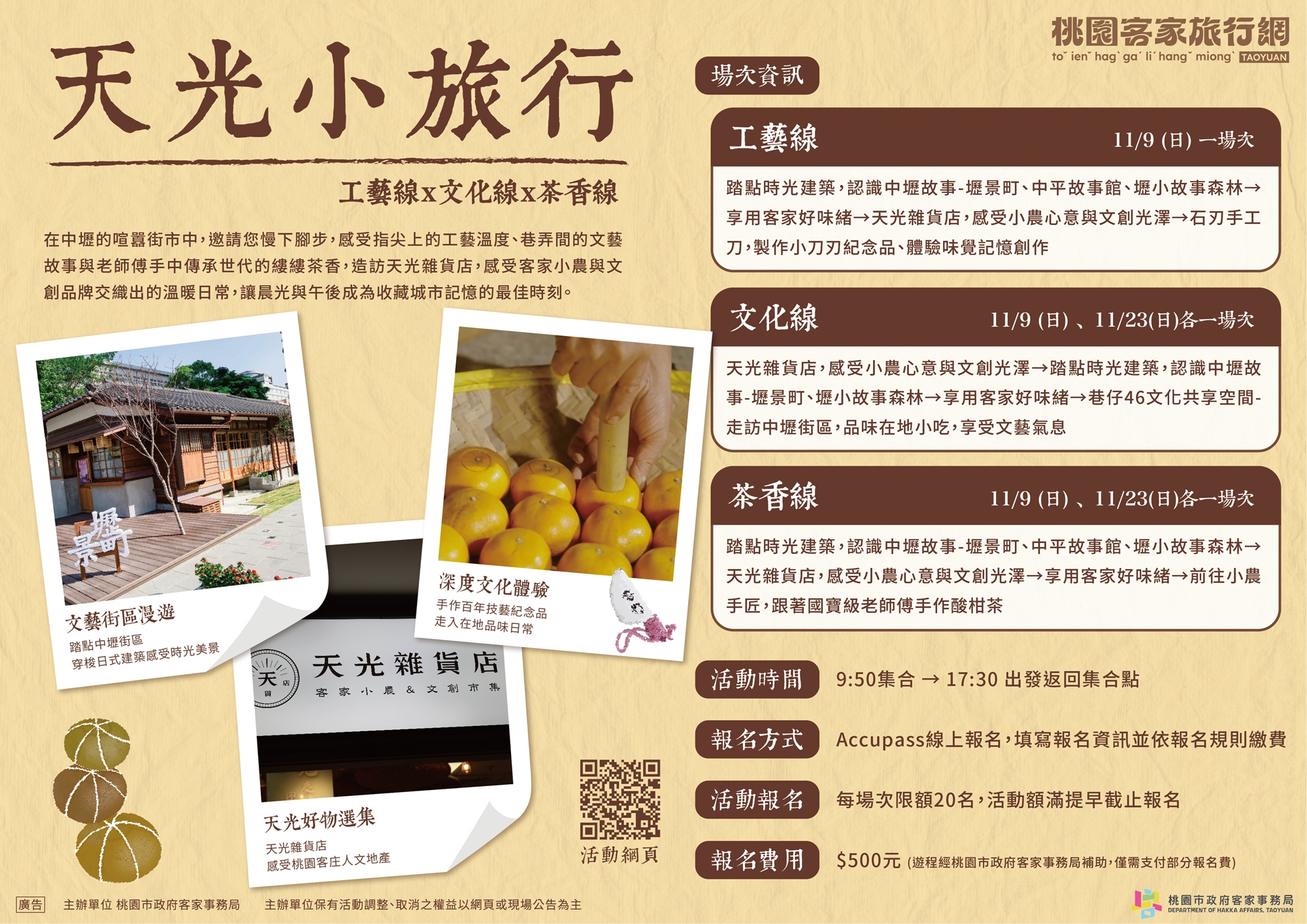 - 報名費用:$500元 (經桃園市政府客家事務局補助,僅需支付部份報名費)