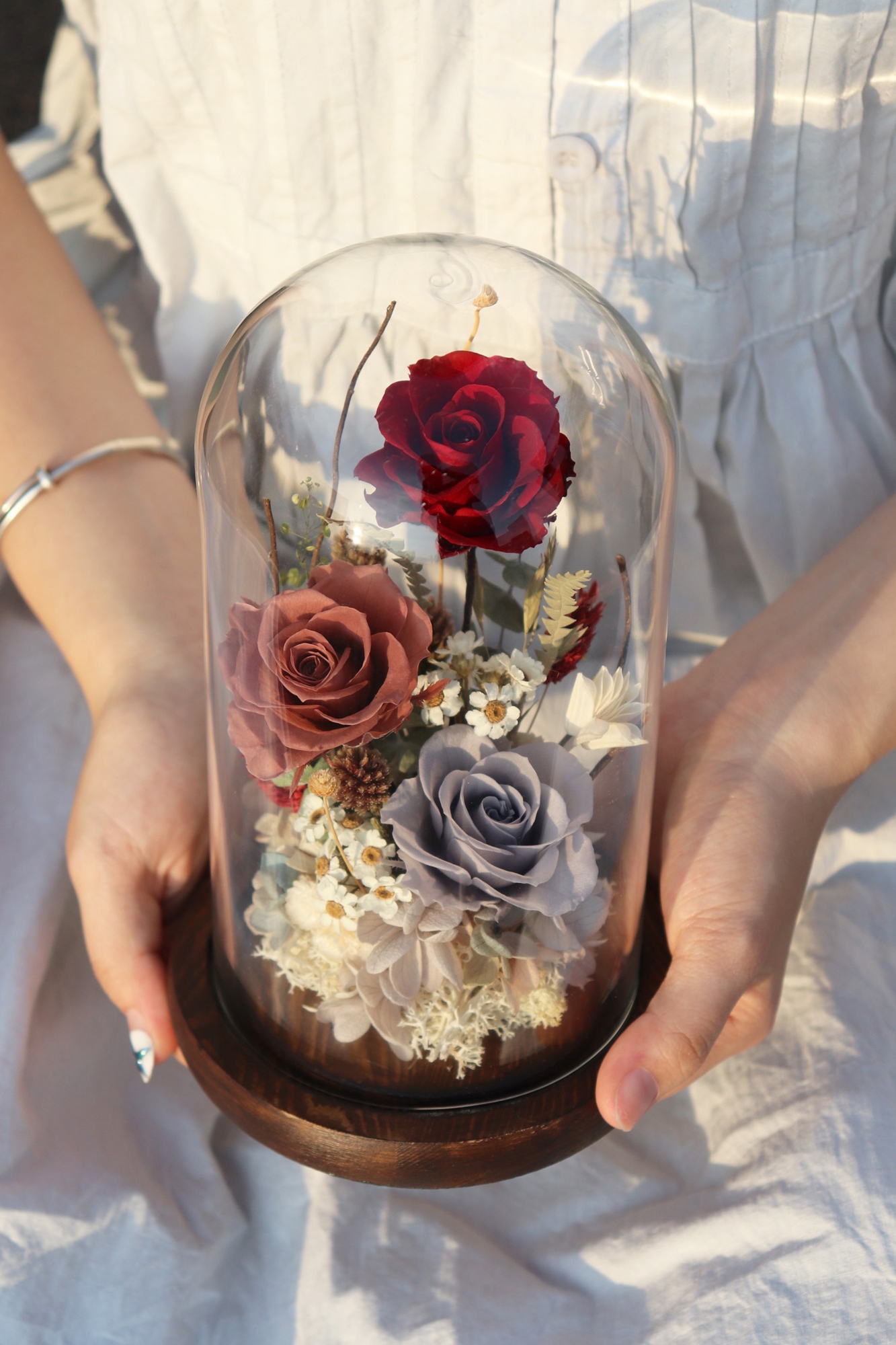 ✦ 永生花玻璃罩高度約21公分