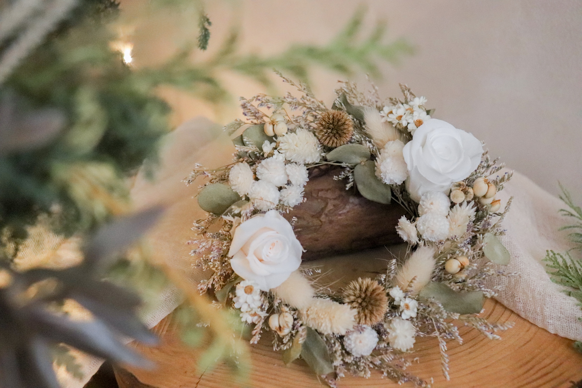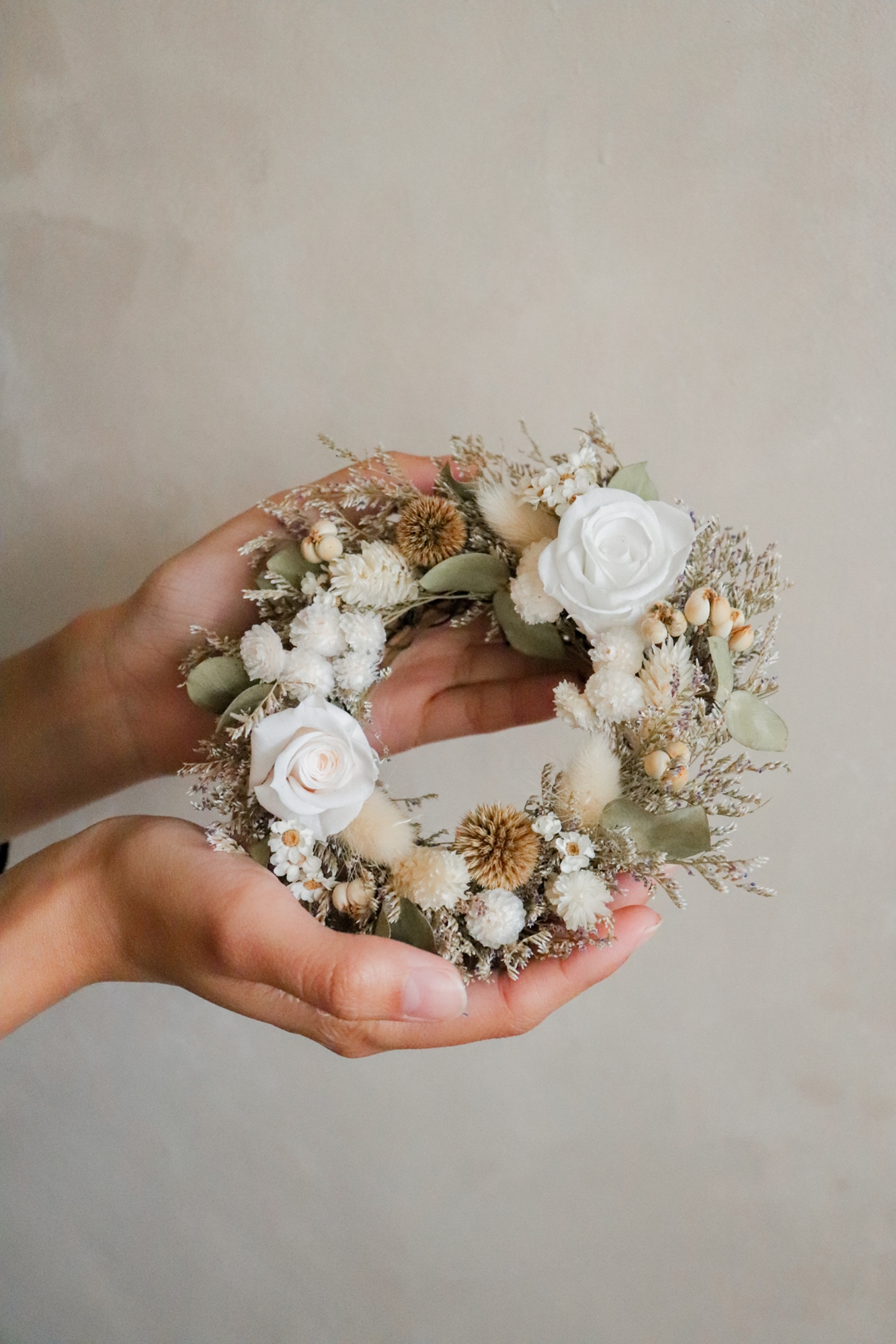 色調柔和又帶有質感,讓小花圈充滿浪漫氛圍。