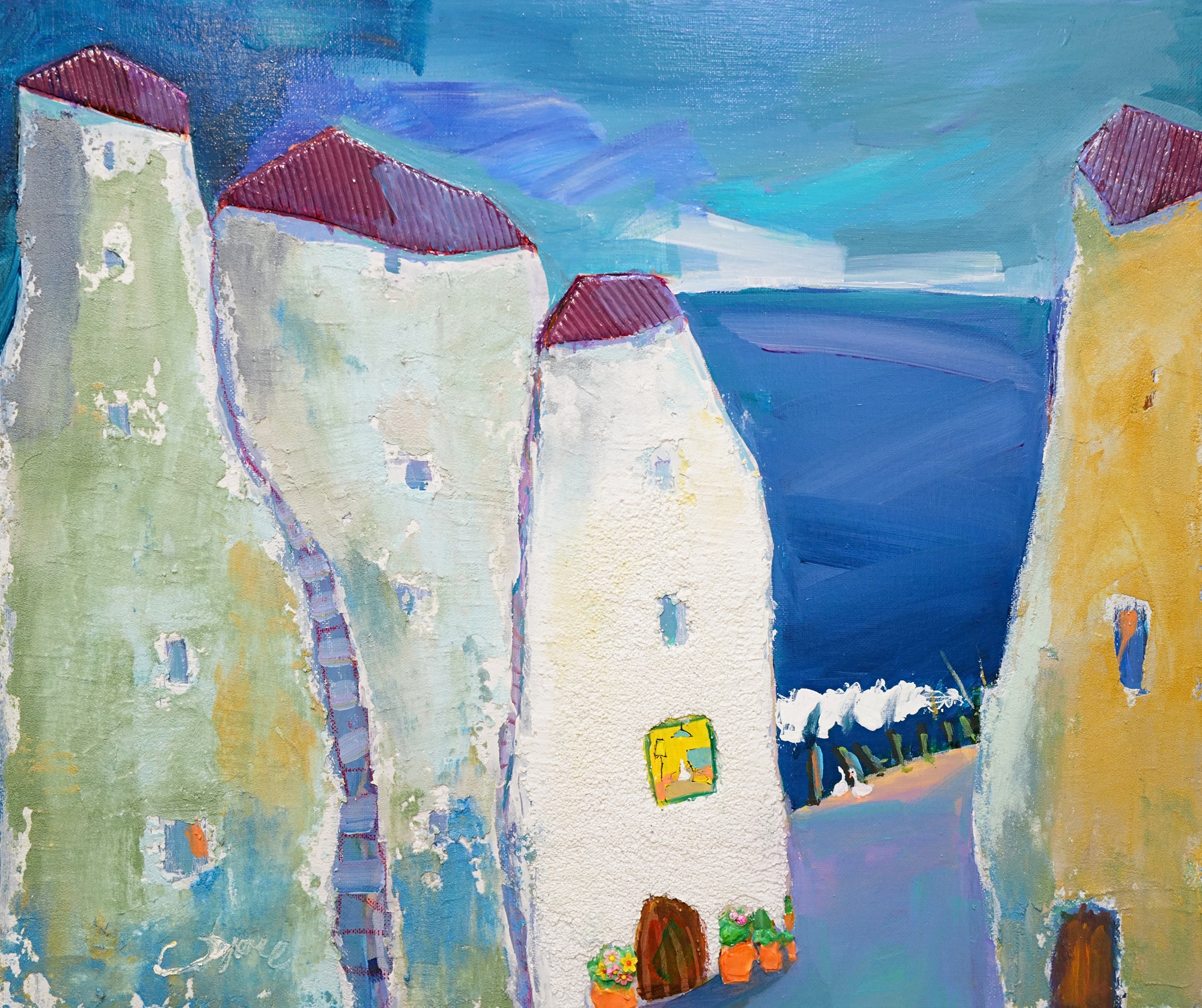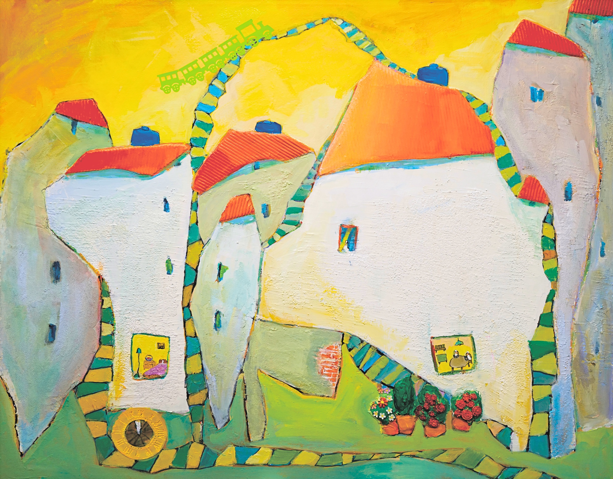 Hyunju Lim is a South Korean artist based in Busan. She has been painting her whole life and took a break to care for her family and household. In the past few years she has returned to the easel to share her whimsical and joyful worlds of wandering streets and the heart searching for small joy.