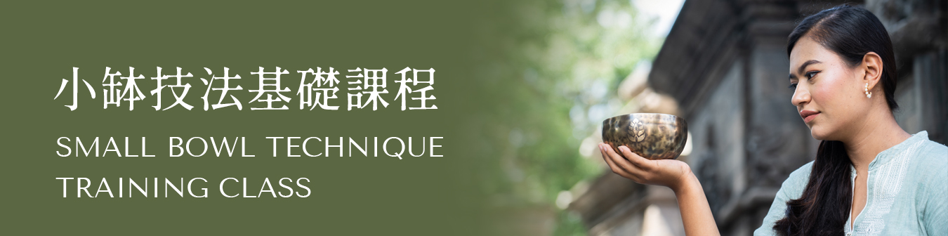 小缽課程中,Ray老師將以Ø13cm 曼特羅手工音療缽進行教學,讓學員學習如何使用小缽進行居家音療保健,並且適用於瑜珈、靜心、冥想等領域,同時強化在自我療癒的頌缽技法上。
