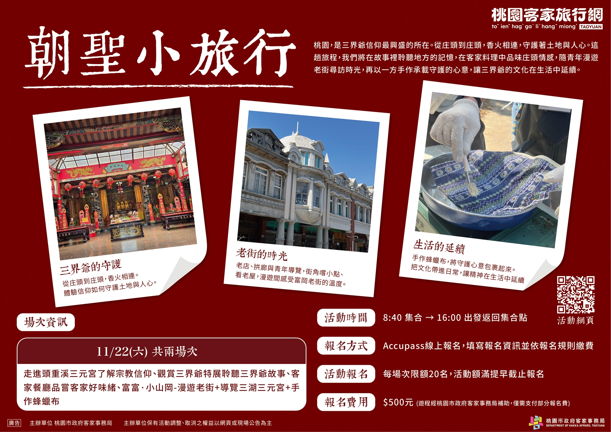 - 報名費用:$500元 (經桃園市政府客家事務局補助,僅需支付部份報名費)