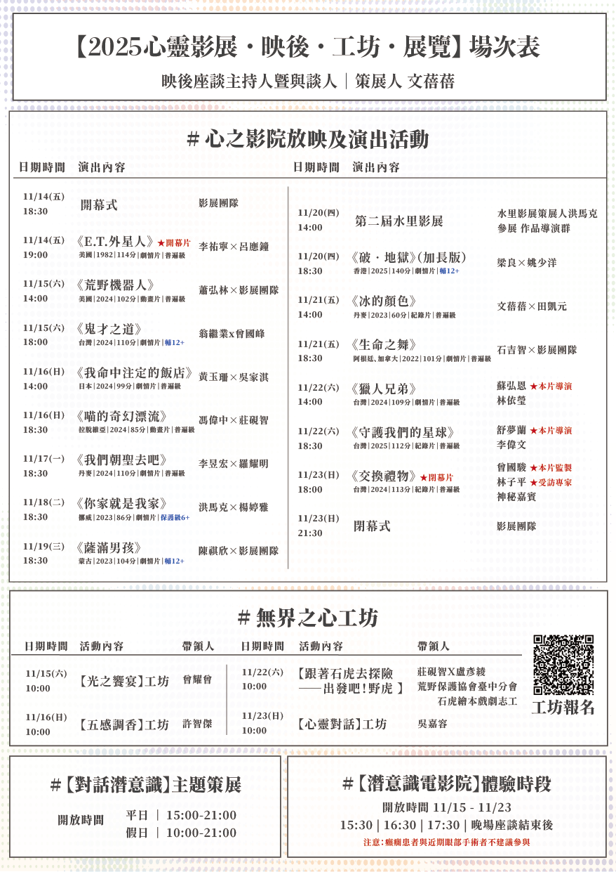 ❣️工作坊報名請於【心靈影展】FB粉絲專頁或掃碼填寫表單❣️