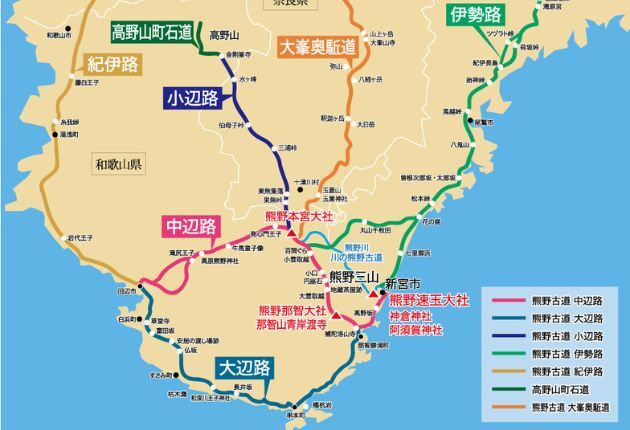 參拜路徑橫跨本州和歌山、奈良、大阪、三重縣的紀伊半島山巒間,