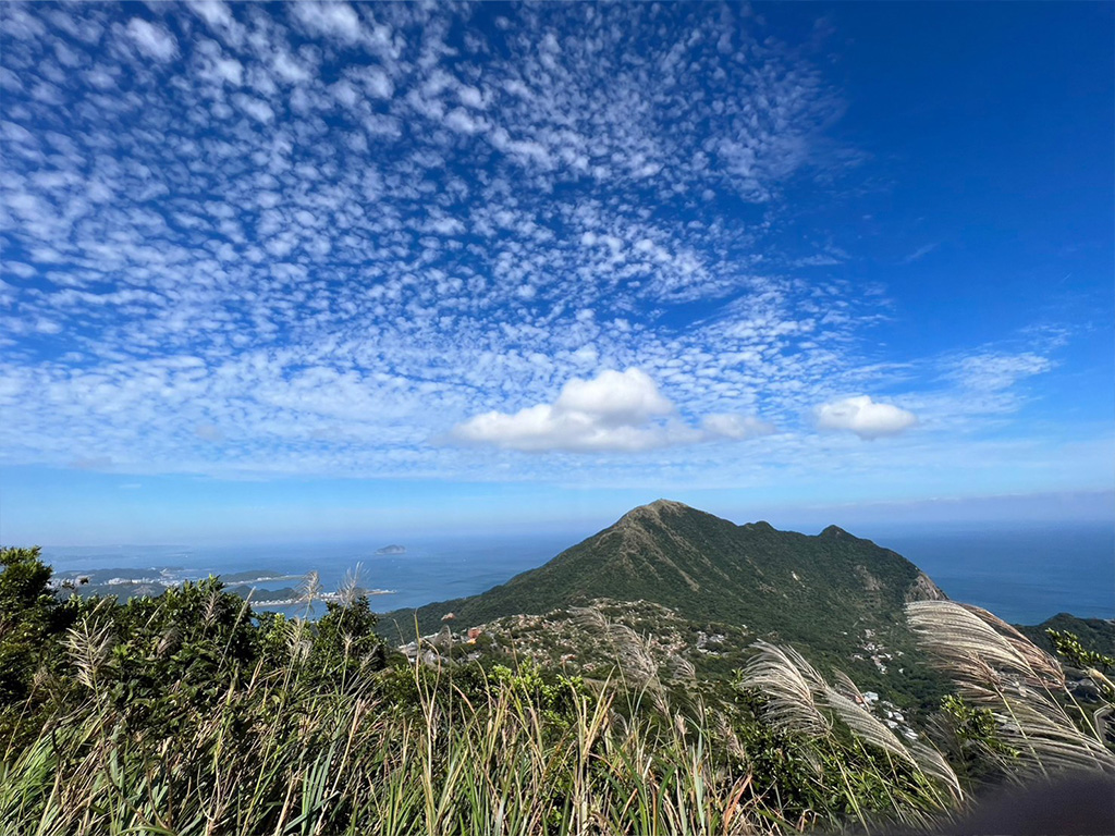 梅樹坪是眺望東北角海岸線的絕佳觀景平台。這裡海拔較高,視野開闊,天氣晴朗時,可將陰陽海、茶壺山、基隆山及九份聚落等獨特景觀盡收眼底。此處也是秋季賞芒花的秘境之一,滿山遍野的銀白色芒花隨風搖曳,與綿延起伏的山巒及湛藍大海形成一幅壯麗的山海畫卷,令人心曠神怡。