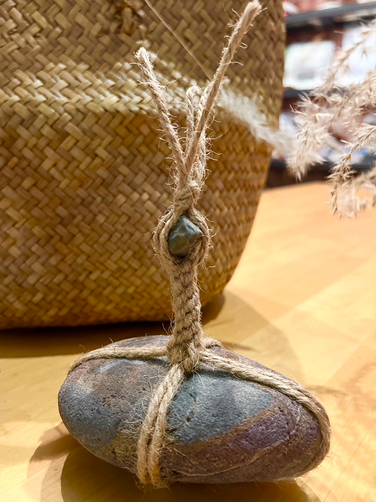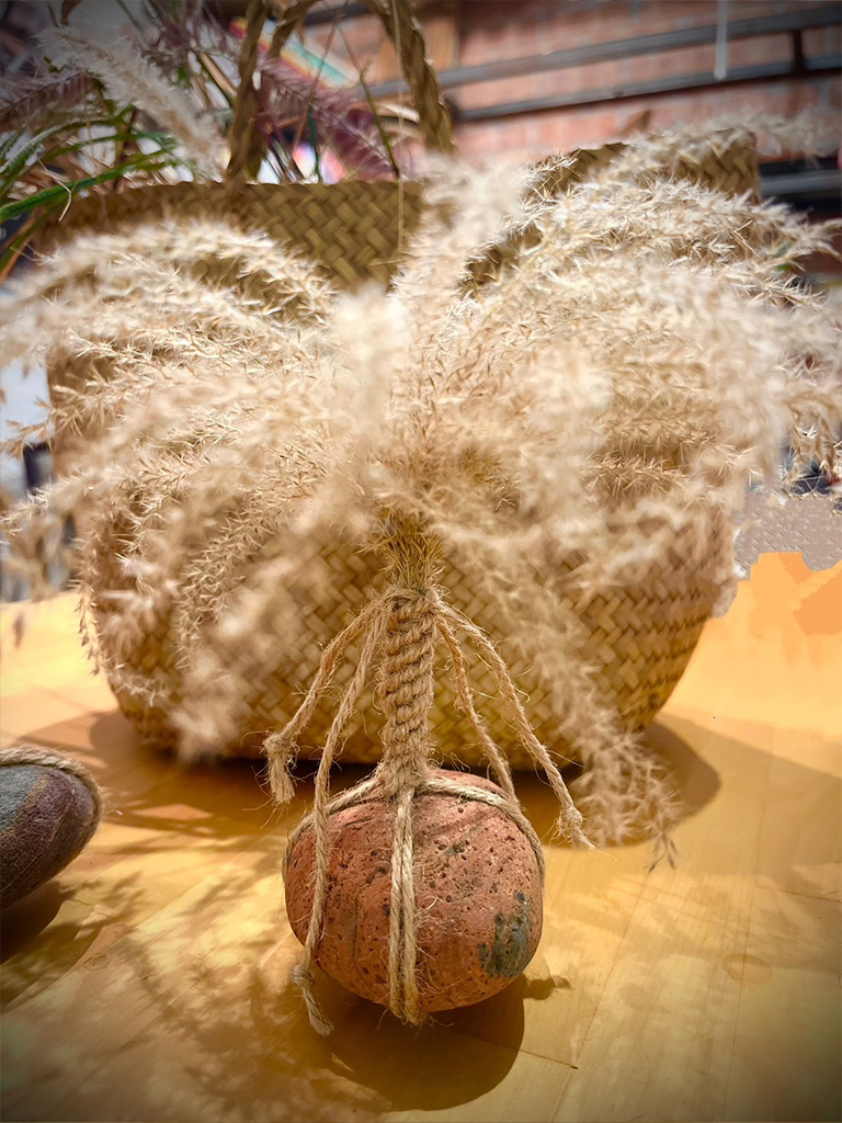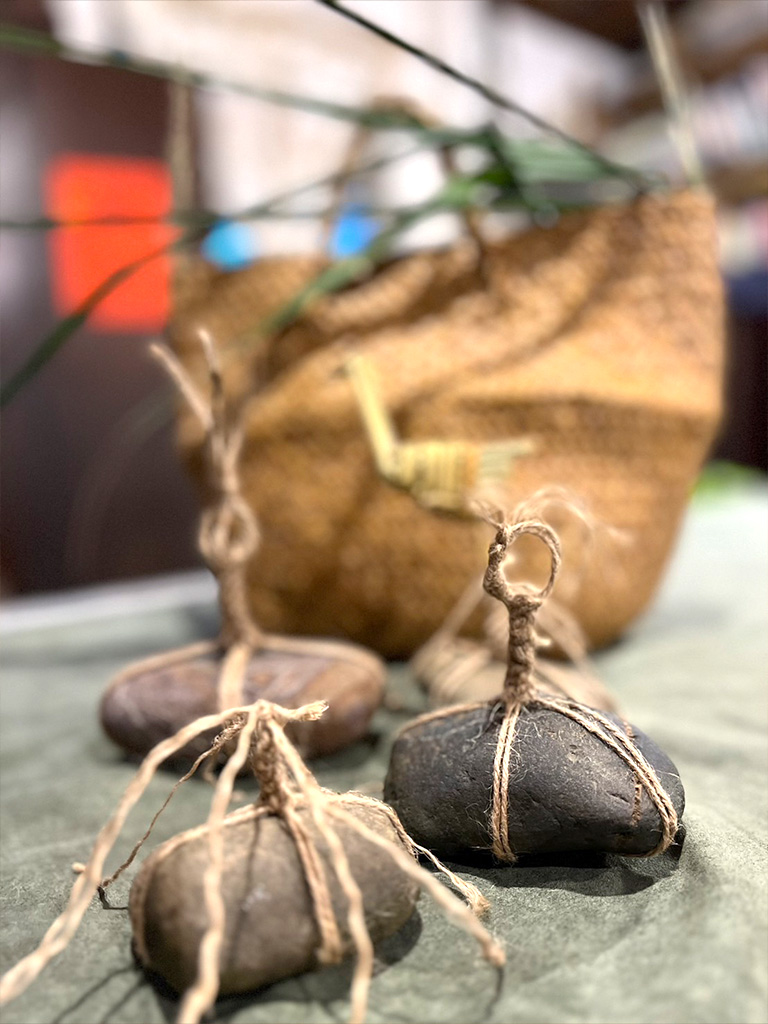 在礦山這裡的居民在秋天時節,為孩子隨手拈來的芒花,做成關刀、小雨傘、小馬、孔雀、小鳥…等玩具,今年以【關守石】讓芒花變成現代的藝術品。【關守石】每一顆石頭都有自己的故事, 從野地被發現,然後綑紮, 成為無聲無息,美的歇止石。也是守住分寸與敬意的象徵。