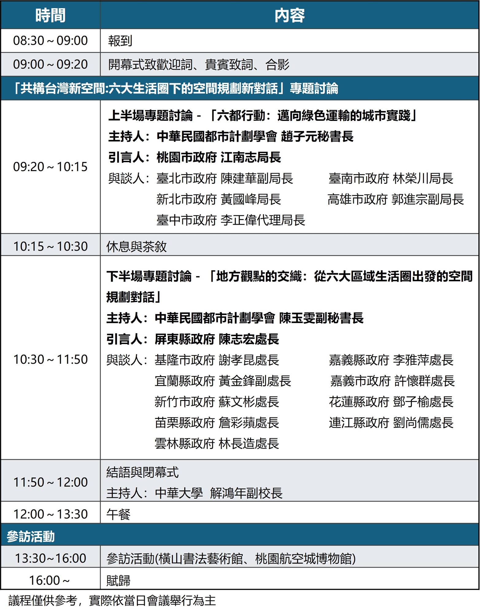 隨著行政院啟動「六大區域產業與生活圈」政策,台灣正進入一場全新的空間轉型進程。這些生活圈不僅是經濟布局的重構,更帶來「地方均衡」、「產業正義」、「環境永續」三重挑戰。面對新格局,地方政府應以空間正義、環境永續與地方主體性為核心價值,透過規劃作為橋樑,整合地方聲音與國土策略。在這樣的轉折時刻,規劃應從制度工具轉化為行動驅動的轉型力量,帶領國土共構一個在地參與、跨域協力、公正永續的空間未來。本次論壇主題將設定二個議題如下: