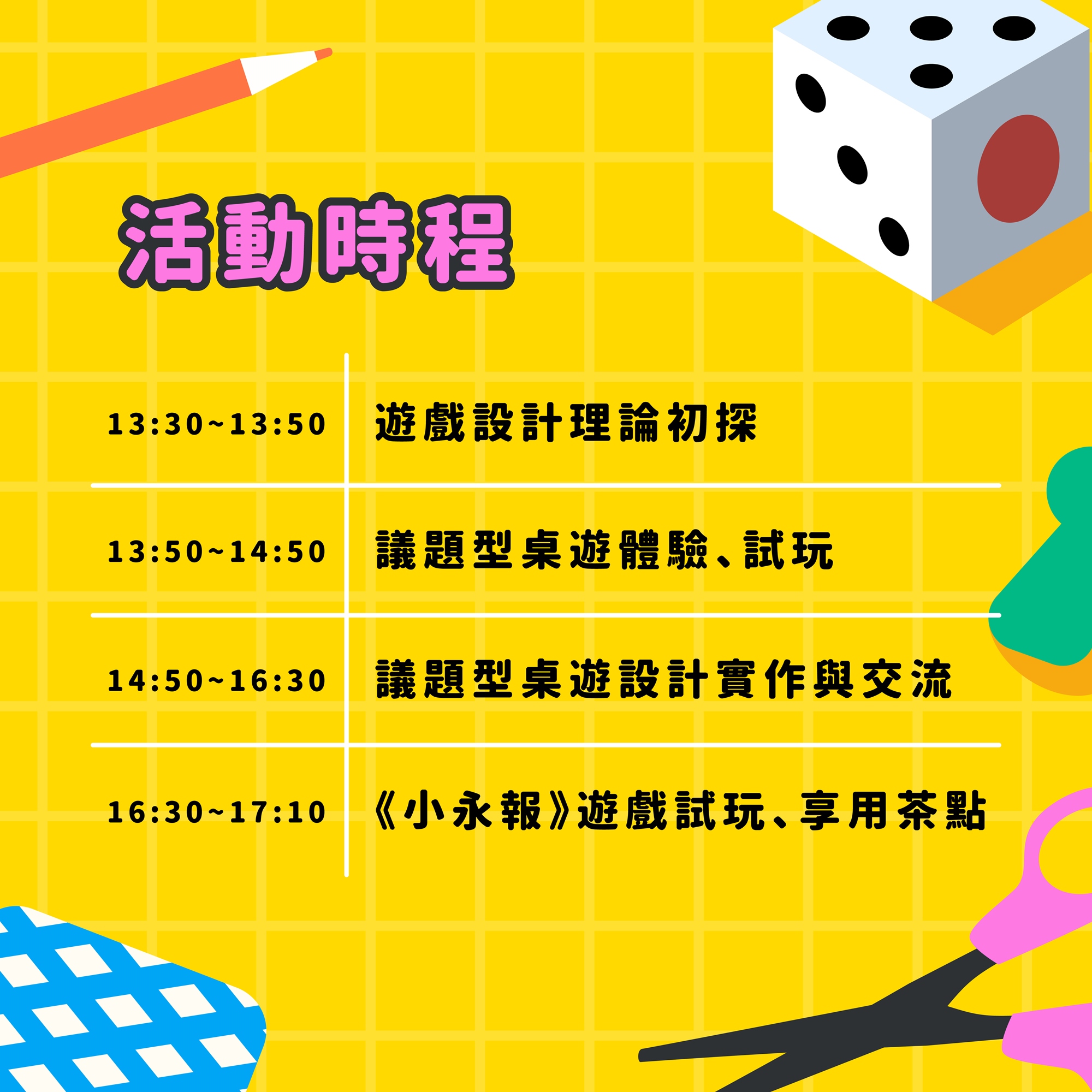 🙋參與資格:本活動以可運用於小學課堂中的議題型桌遊為主題,課程專為新手老師或第一次接觸桌遊化教學的教育者所設計,無需任何遊戲設計背景,課程將從基礎開始,讓每位參與者都能輕鬆上手。