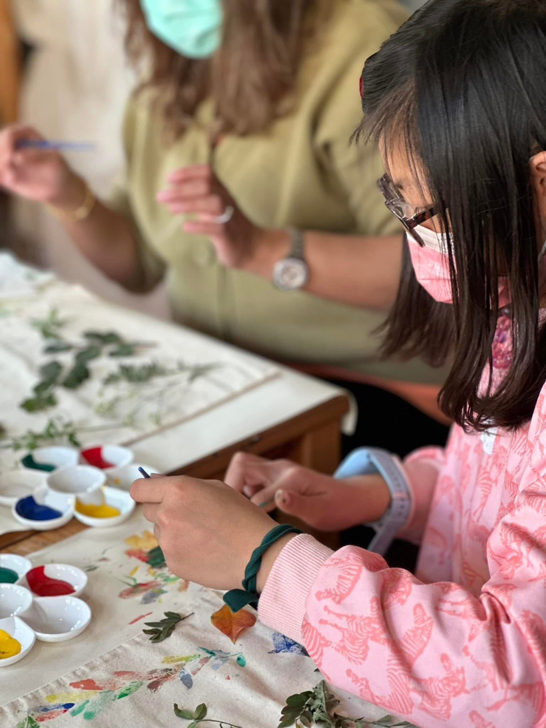 老師帶著大家從繪本認識植物,利用植物的脈絡 與孩子調和出的顏料併發出一幅專屬自己的植物畫!