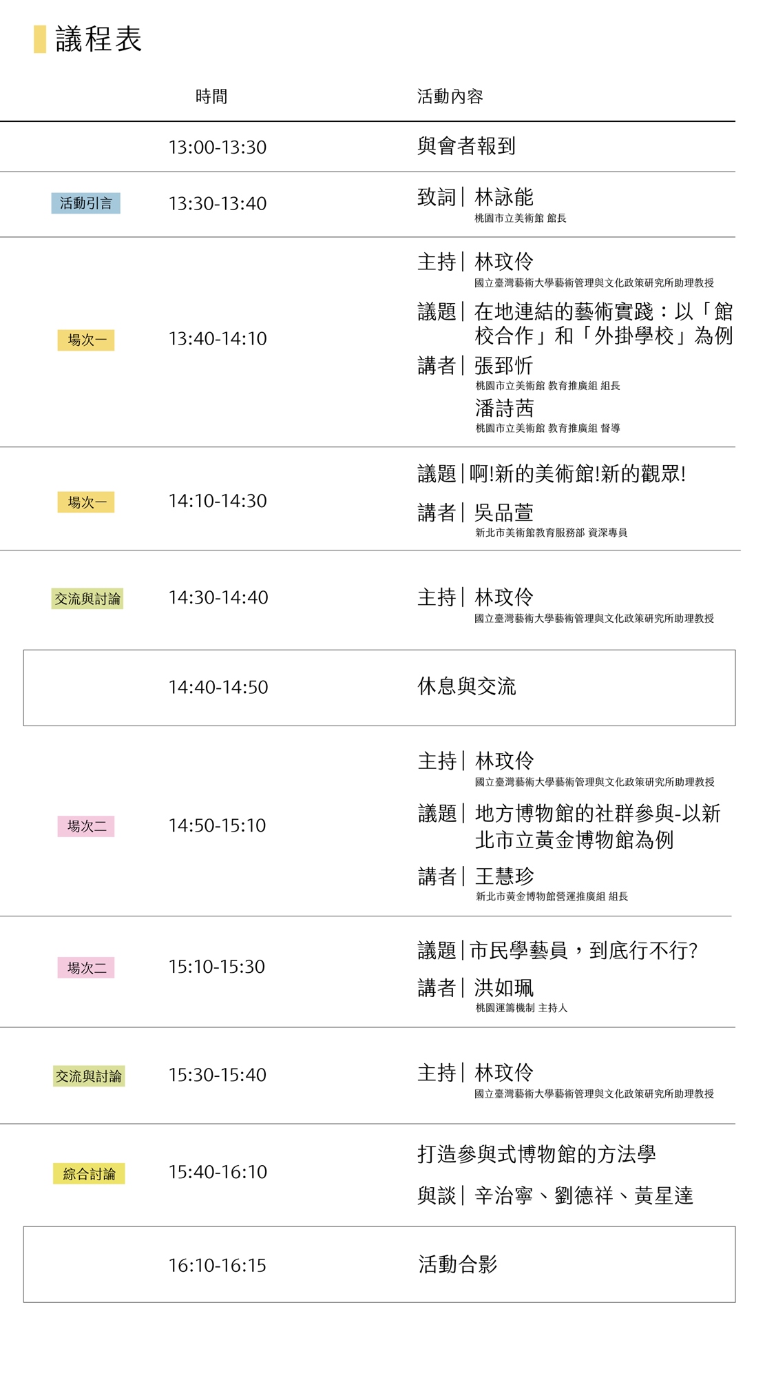 本次論壇與 桃園市立美術館 攜手合作, 以其「一機關多場館」的創新模式為契機,