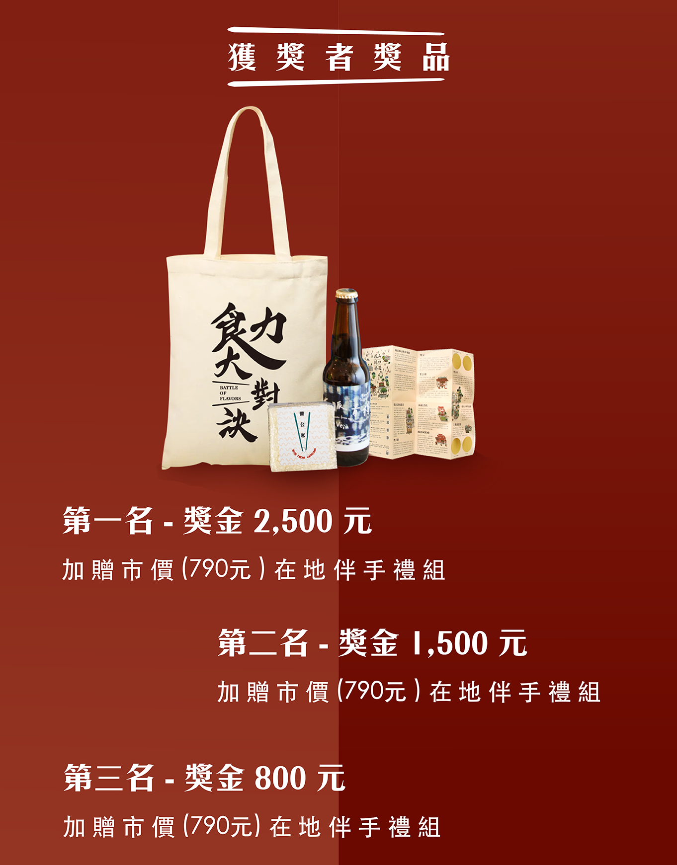 🥇 第一名:獎金 2,500 元+在地伴手禮組(市價790元)