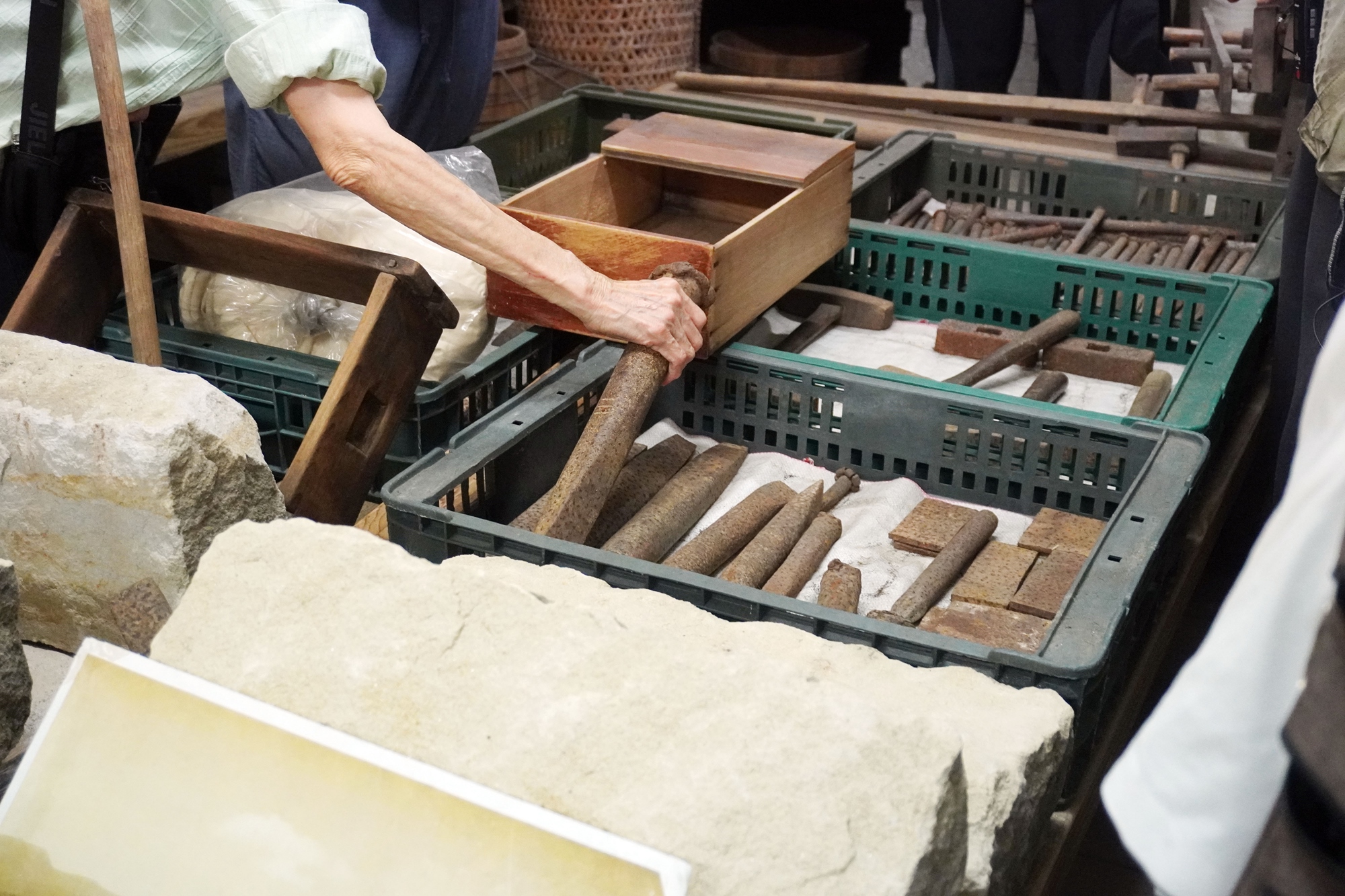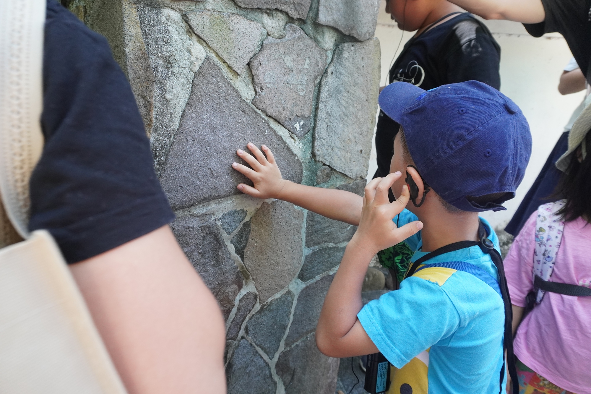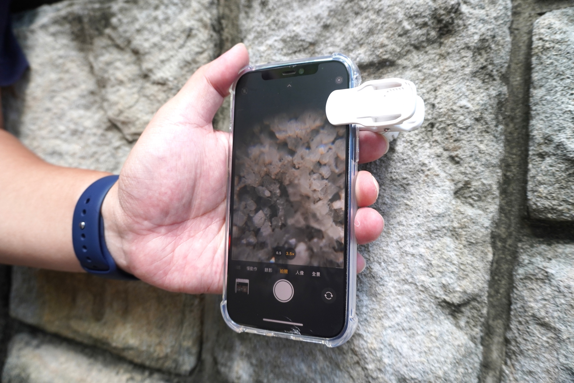 ▲觸摸石材的紋理,認識北投因火山地質形成的安山岩、還有砂石地質形成知名的唭哩岸石,以及一同探索享負盛名的北投石與在地關係