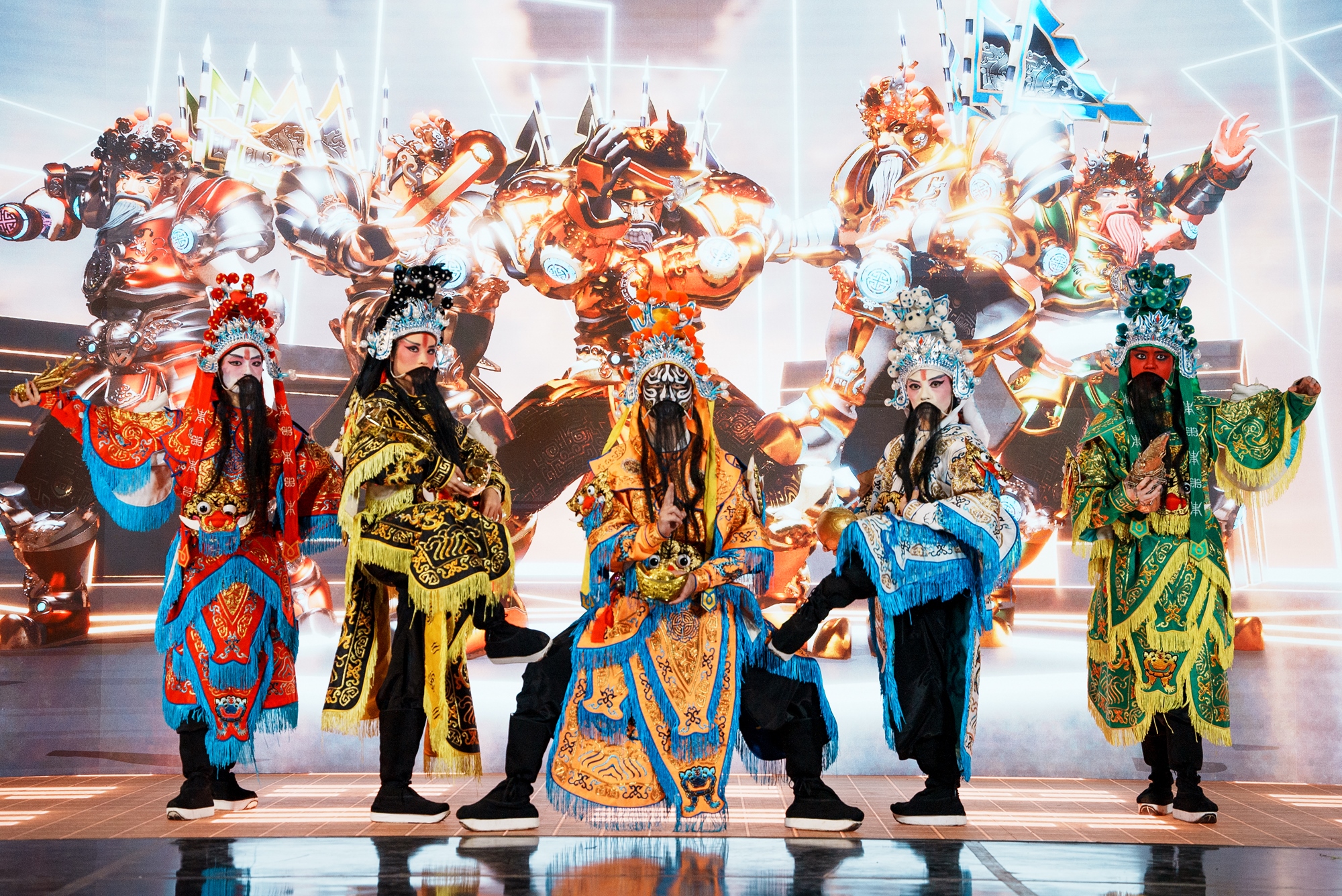 A collaboration between the Motion Capture & Animation Tech Lab, Dept. of Digital Multimedia Design, China University of Technology and the Hoyi Dance Crew, The Five Martial Gods of Wealth: Virtual-Real Fusion Performance centers on the theme of the "five martial gods of wealth" and unfolds as a cross-disciplinary experiment where the virtual and the real, tradition and modernity intertwine. Blending the