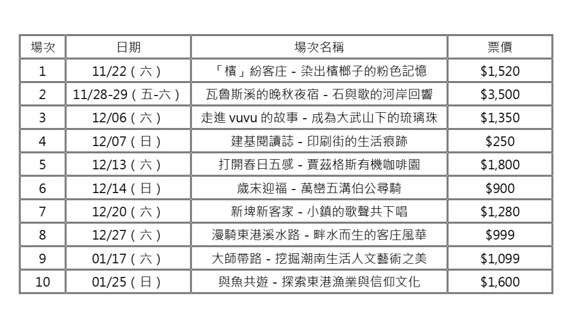 ※活動集合後將共同前往,票價費用包含旅程導覽、體驗、餐食及保險