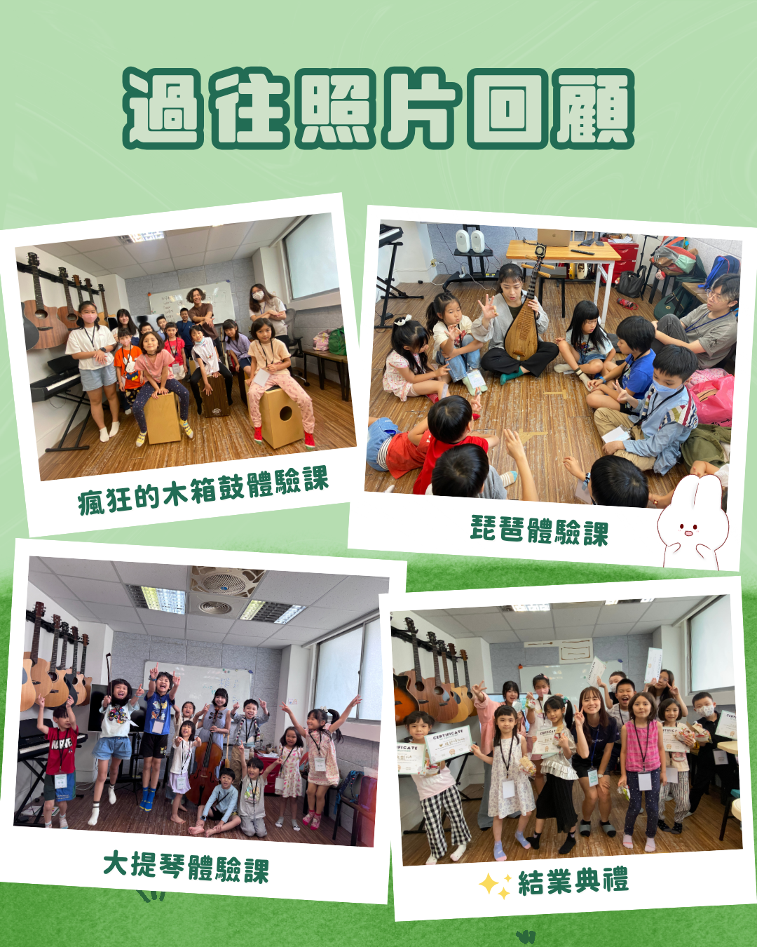 多種樂器且完整的課程,帶孩子們認識各大樂器,並用遊戲的方式讓孩子們在短期內演奏出最簡單的曲子🤩