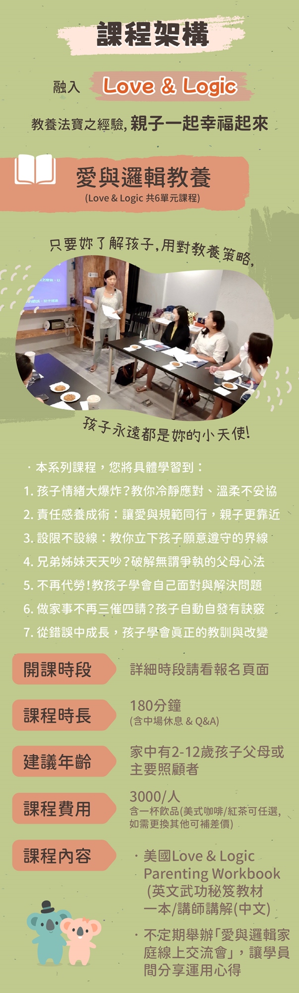 📣 12/05(五) [愛與邏輯教養工作坊] (一堂約2小時)$3000/堂