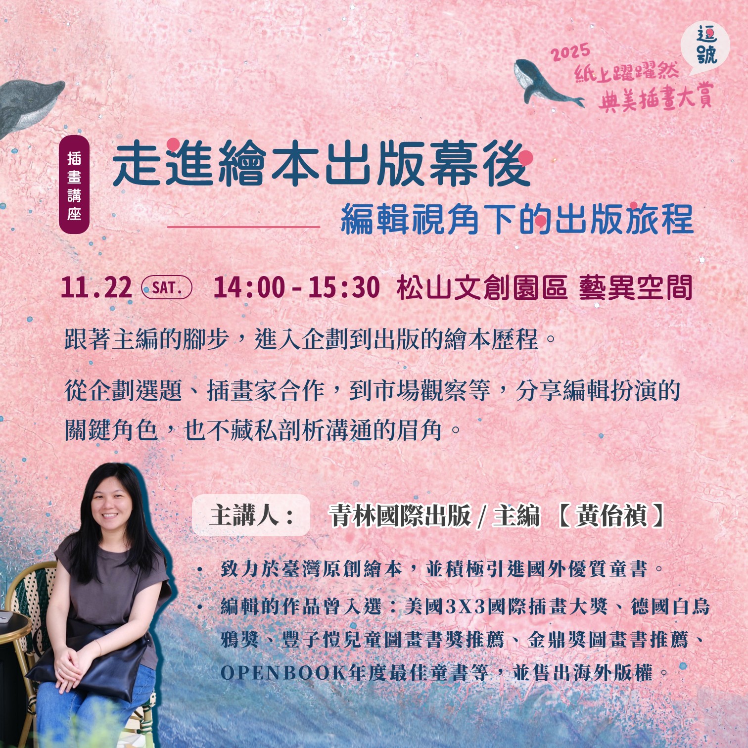 😊11/22(六) 14:00-15:30 專題講座|走進繪本出版幕後-編輯視角下的出版旅程