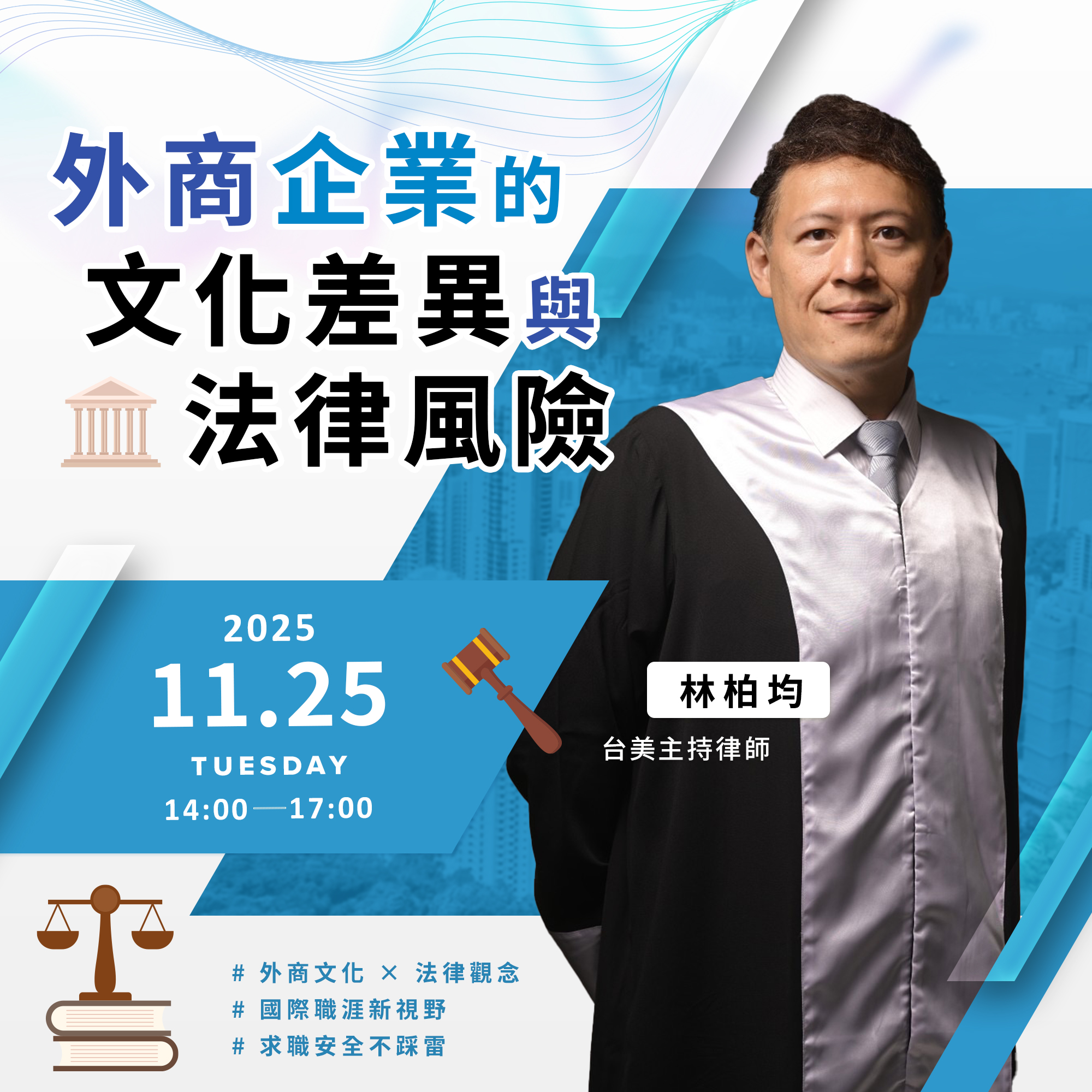 林律師將以實務案例與專業視角,帶領大家看見外商職場中的文化差異、並提醒你如何識破以「外商」為名的詐騙陷阱。