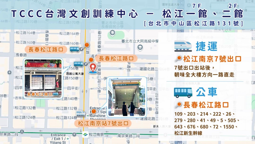 - 地點:台北市中山區松江路131號2樓(台北松江文創2館)