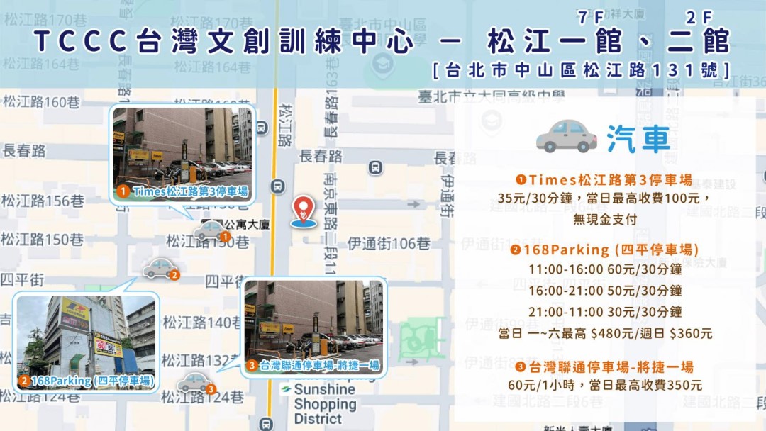 ◎ 嘟嘟房松江三站停車場:台北市中山區松江路173巷,每小時70元,無計次。步行約5分鐘。