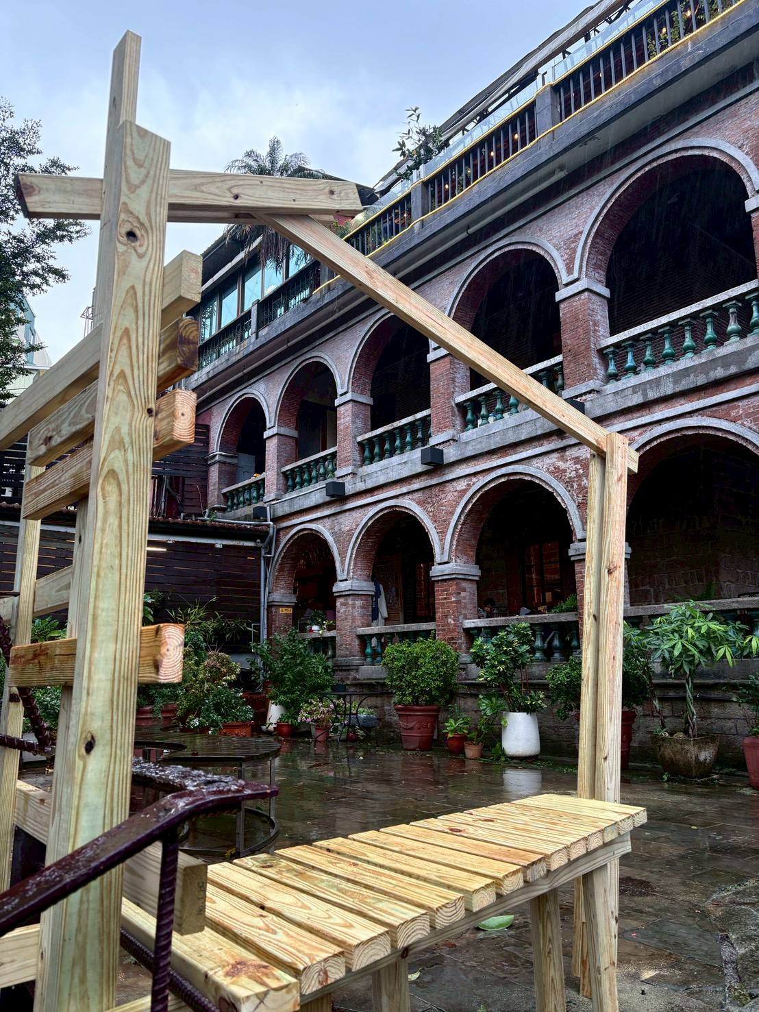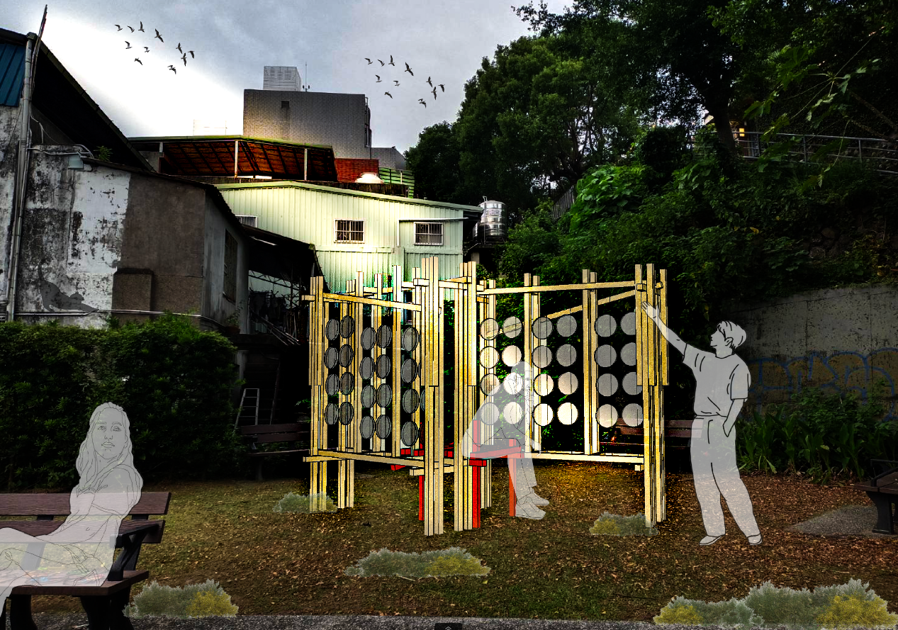 在淡水重建街的巷弄之間,有一條不被地圖標記的路徑。這條「低語之徑」由街角的家具、牆面的語句、孩童的生活與居民的故事編織而成。每一個轉角都是一個微型劇場,每一件家具都是一個敘事節點,每一次停留都是一次空間的傾聽。透過幾個模組家具、可移動、任意組合方式調整空間樣式與種植盆栽整理結合。這是一種從下而上的空間生成方式,也是一種對地方的深情回應。重建街的空間改造不應只是美化工程,而是居民自我定義生活場域的活動發生。