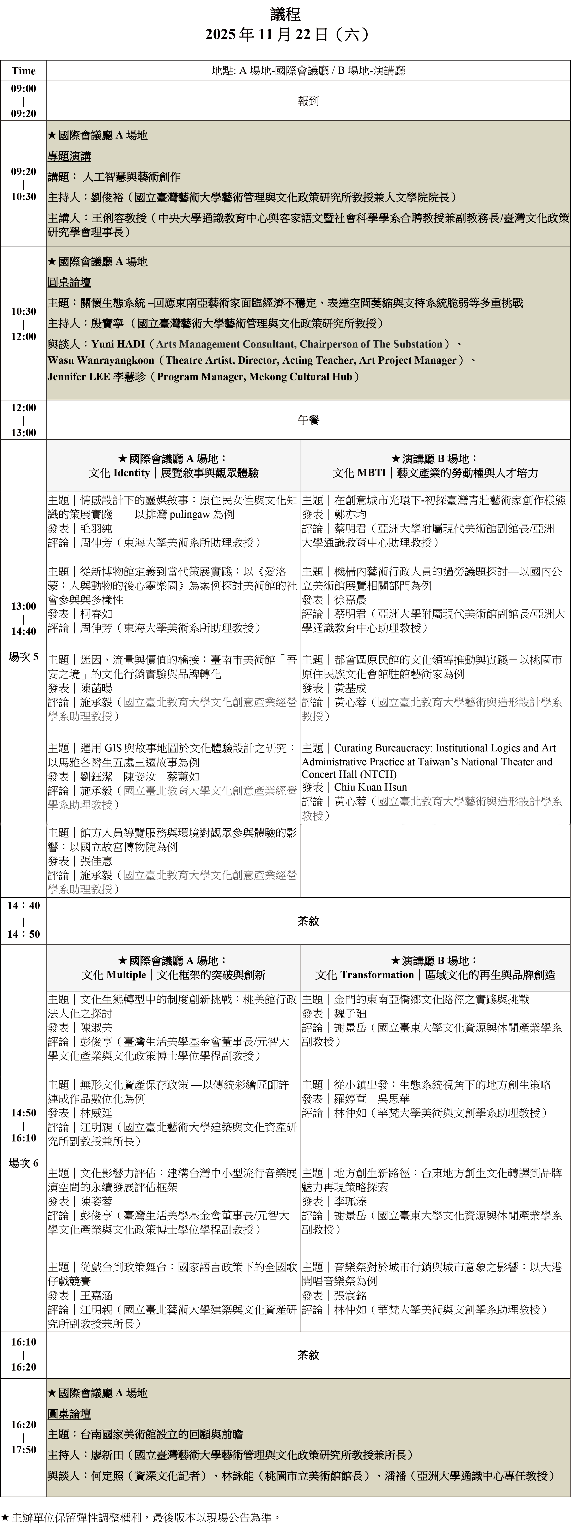 Venue: International Conference Hall, 10th Floor, Teaching and Research Building, National Taiwan University of Arts