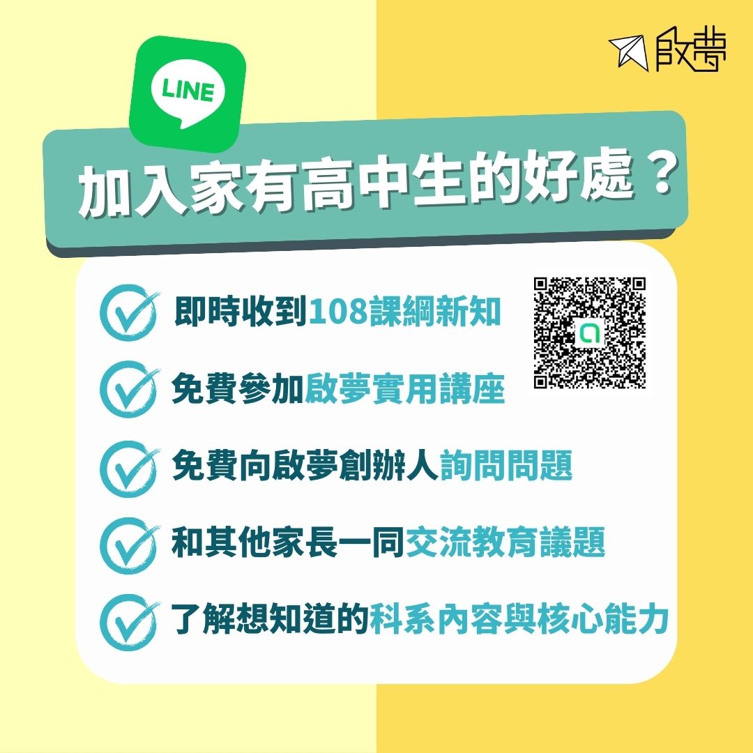 另外好康送給你!歡迎免費加入LINE社群《啟夢教育|家有高中生》,